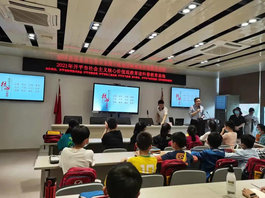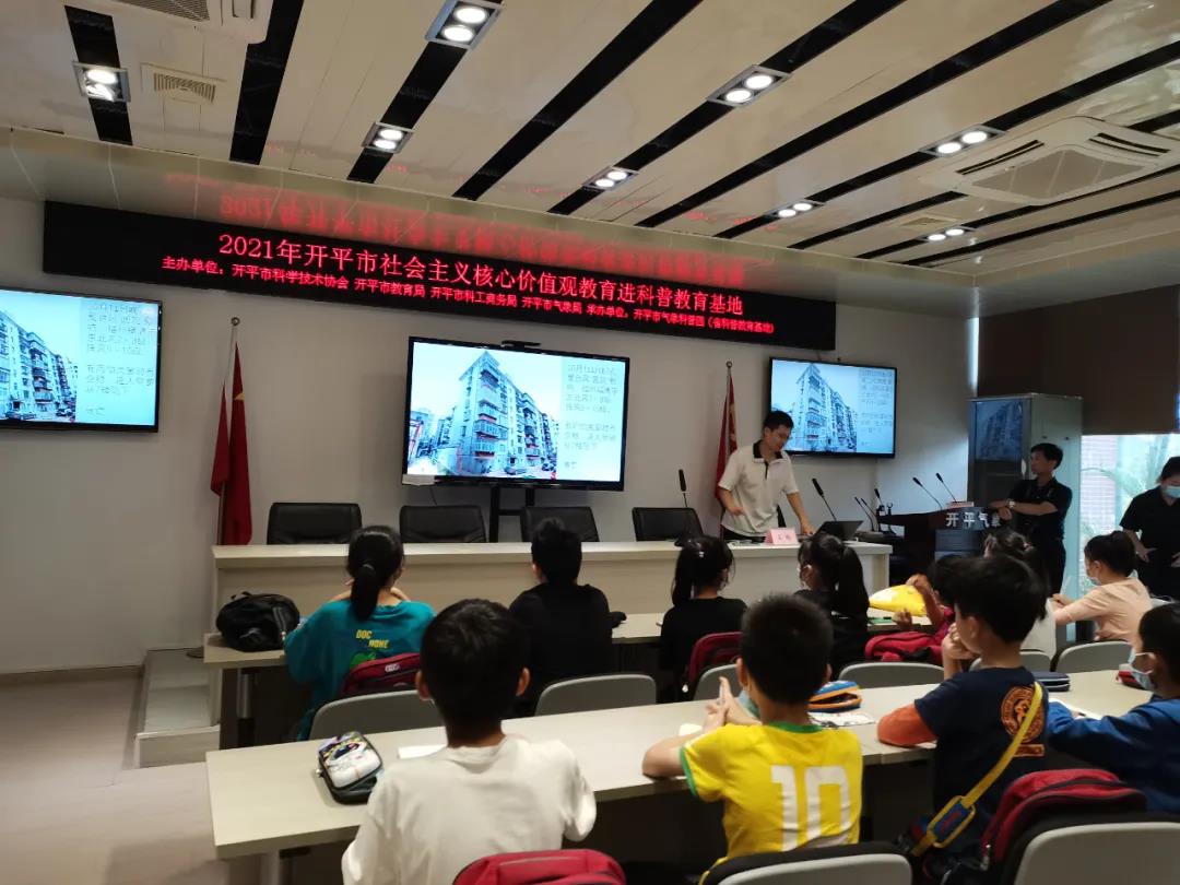 为了普及气象知识,弘扬科学精神,在开平市教育局领导的大力协助下,10月20日下午,我校组织五年级全体师生前往开平市气象局参观。气象局的工作人员热情地接待了同学们,为同学们精心准备了“科普大礼”。工作人员首先开展了气象知识讲座,为同学们讲解了天气预报的流程、各种气候的形成以及如何防范气象灾害等知识。工作人员还为同学们详细介绍了各种观测仪器的作用和功能,让大家深入了解气象仪器的智能化、预报预测的精准化、高端服务的专业化、气象管理的高效能以及科技创新的持续性。