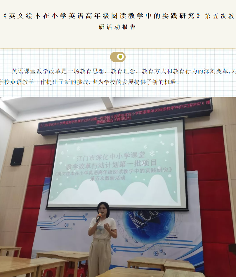 《英文绘本在小学英语高年级阅读教学中的实践研究》第五次教研活动报告