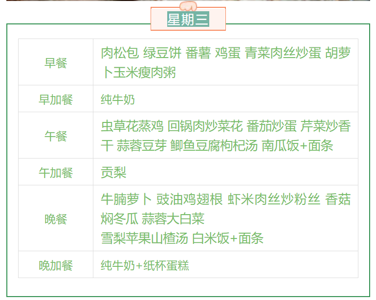 开平市碧桂园学校第十八周食谱