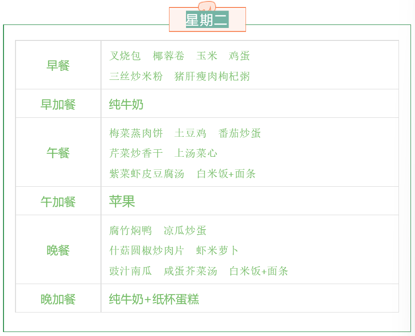 2.若孩子对以上食材有过敏或不宜进食的,请家长们提前告知班主任。