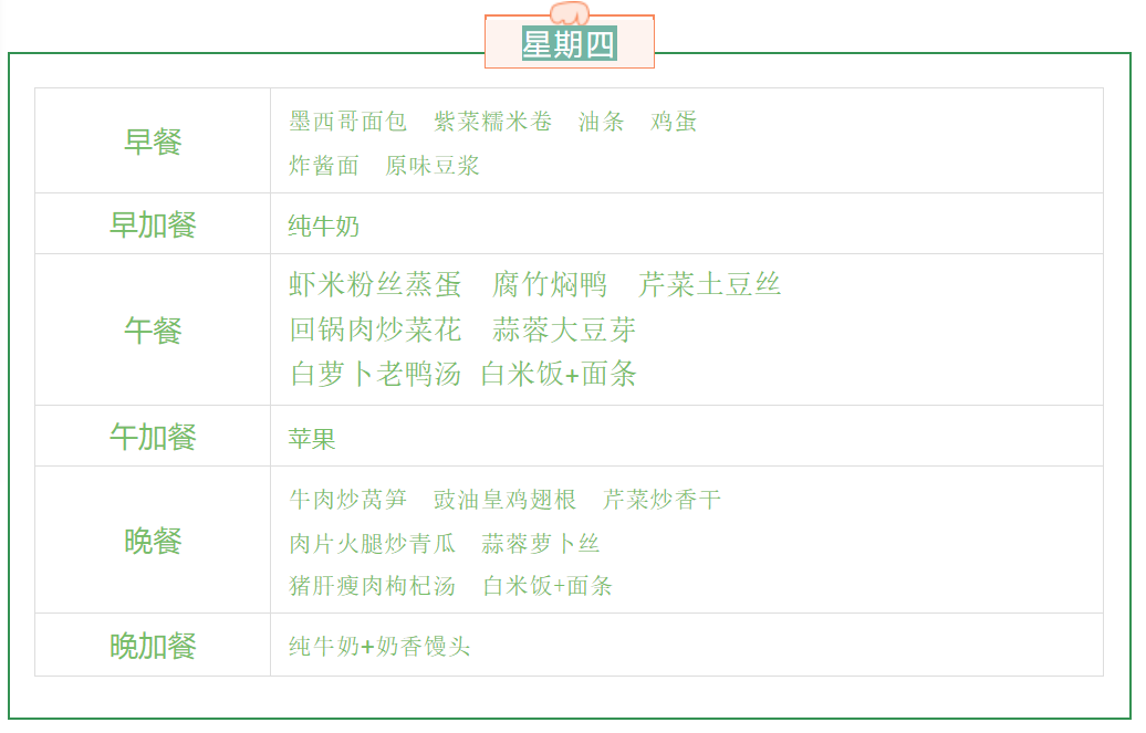开平市碧桂园学校第四周食谱