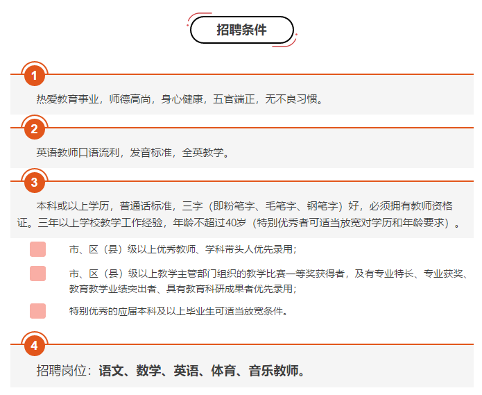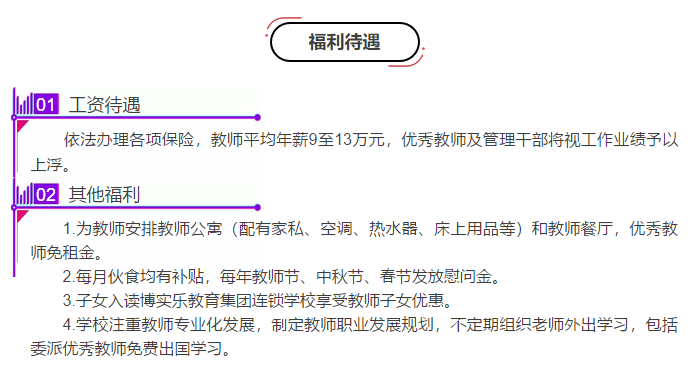 学校配备了智能化的教学设备,建有综合楼、运动场、图书室、美术室、音乐室、实验室等齐全的配套设施。学校发展扩班需要,现面向全国招聘小学各科优秀教师。