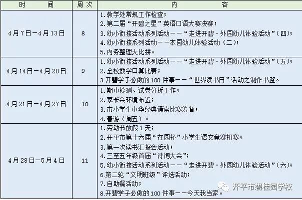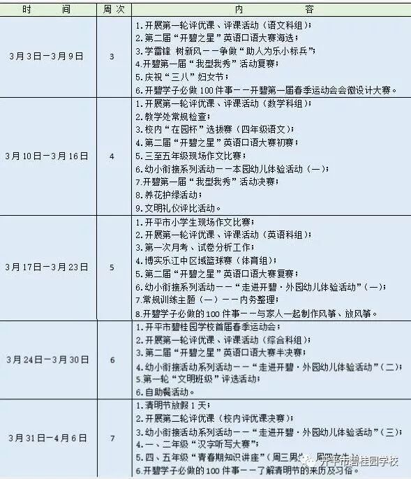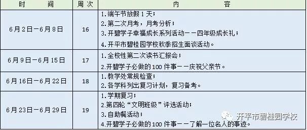 博实乐开平市碧桂园学校2018-2019学年度第二学期行事历