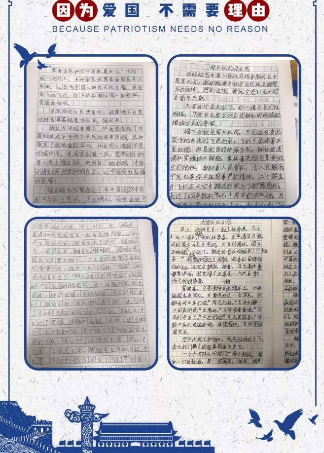 全国人民期待已久的华诞70周年——普天同庆的日子终于到来啦!观看大阅兵是一件非常值得骄傲和自豪的事情,爱国要从娃娃抓起!为此,学校专门在开碧学子必做100件事中布置家长陪同孩子一起观看大阅兵,要求一、二年观看阅兵之后用画一画来体现自己的爱国情感,三至六年级以写观后感的方式来表达自己的爱国情怀!