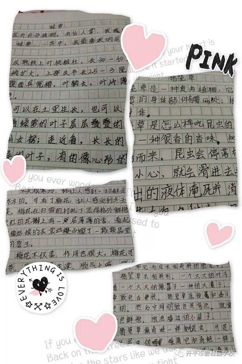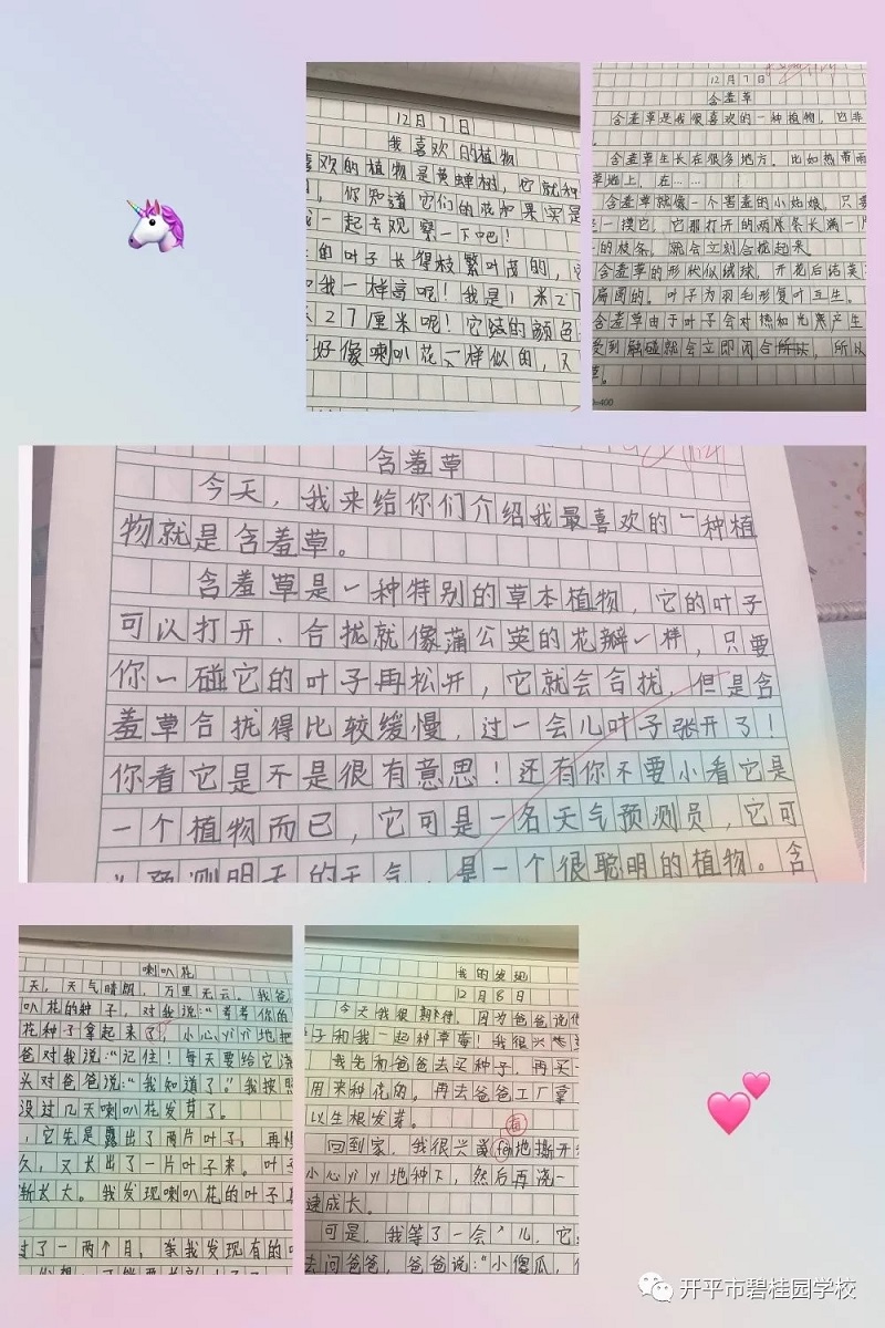 可爱的开碧学子走进了奇妙的植物世界,不仅用视觉、嗅觉、触觉去了解,更用心灵去感觉,用语言、文字去记录。低年段的学生通过那稚嫩的童声,面对镜头娓娓道来。高年段的学生则手执纸笔,用文字记录下自己的所观所感。