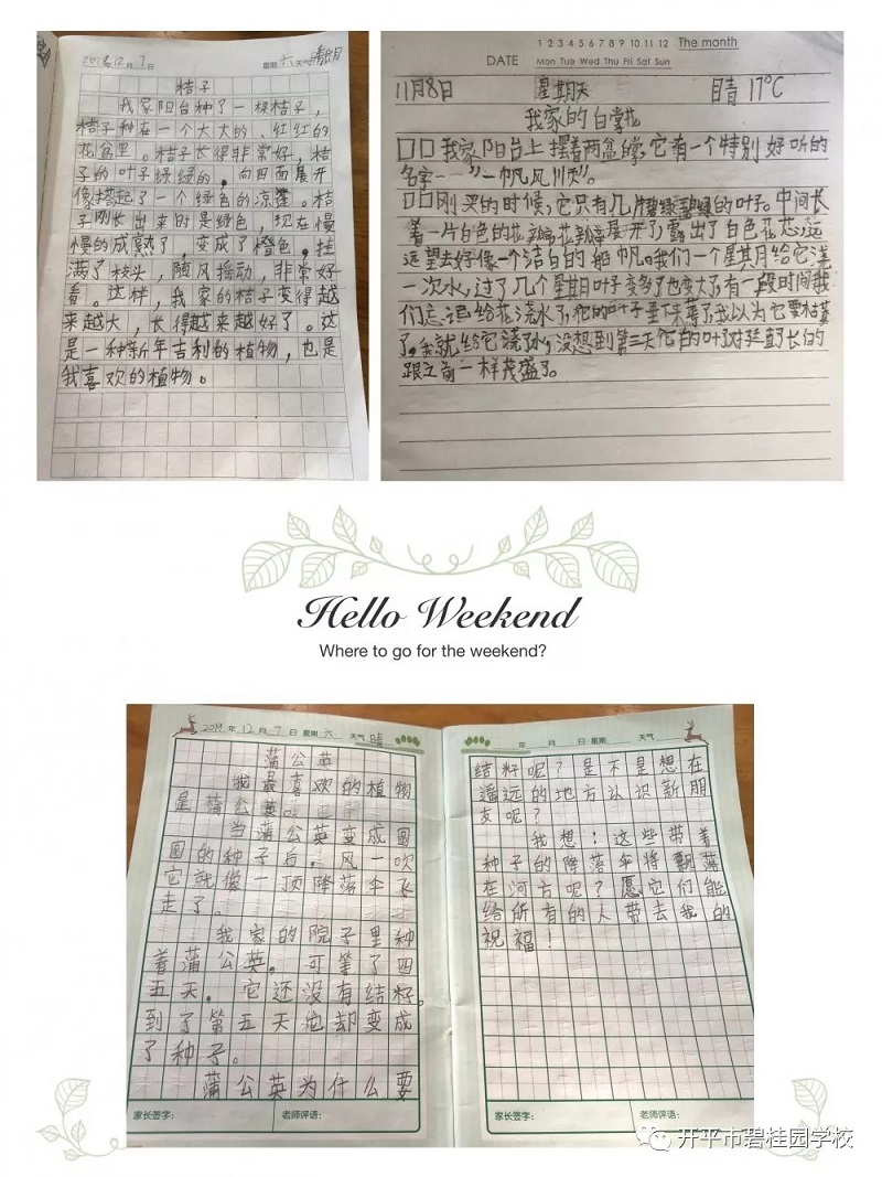 开碧学子利用周末时间,化身一名细心的小小观察员,并带上感官的“放大镜”,开启了一段奇妙的植物探索之旅。当走进大自然的植物世界,开碧学子发现,植物不仅是有生命的,更是十分奇妙的:金黄金黄的黄蝉,火红火红的琴叶珊瑚,热情似火的朱槿,冬日傲然枝头、勃勃生机的绿萝……植物何曾说话,但她那伟大潜隐的力量,已这般的浸润着开碧学子们的童年。