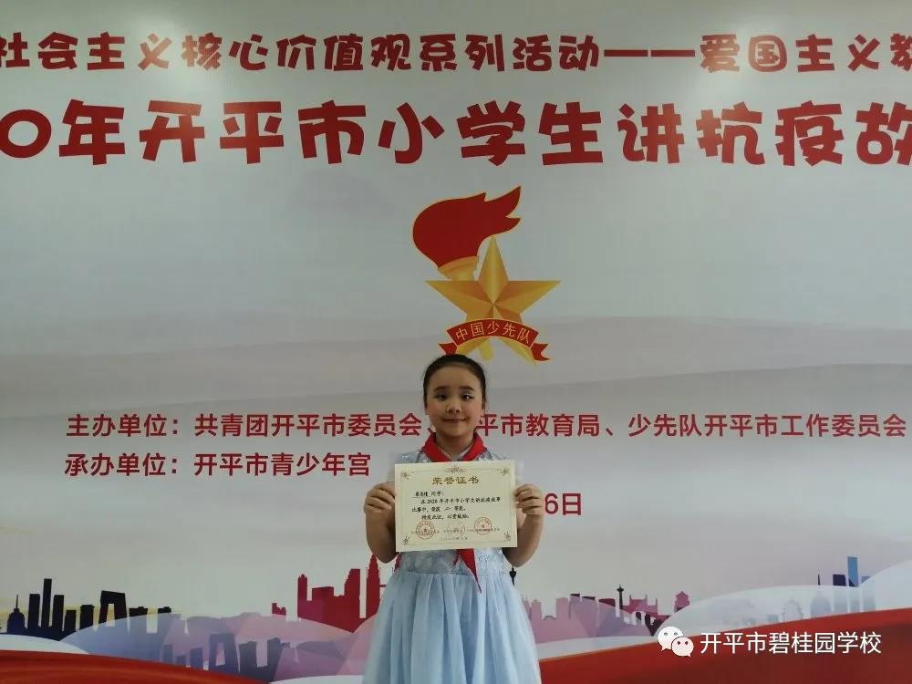 2020年6月16日,在共青团开平市委员会、开平市教育局、少先队开平市工作委员会主办的2020年开平市小学生讲抗疫故事比赛中,我校学子尽展风采。