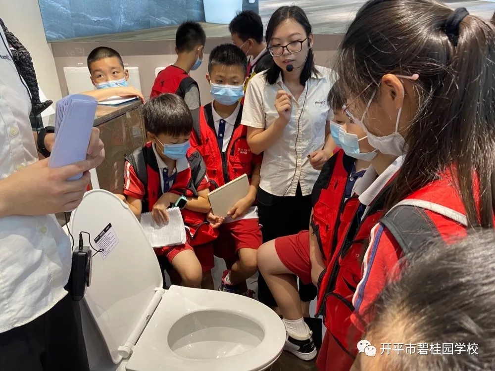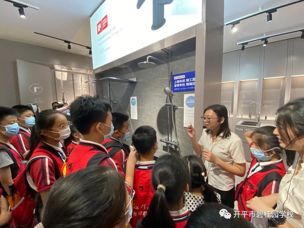 随后,小记者们又参观了华艺卫浴实业有限公司的产品展示厅。先是近距离观察卫浴产品的外观和质量,观看特色产品的性能展示,感受企业的整理卫浴设计特色,了解引领卫浴行业风向标的产品设计和生产理念;然后参观华艺卫浴实业有限公司的生产车间,了解和学习产品的生产制造流程,以及传统手工模具制造与现代化机器人制造的融合创新形式。