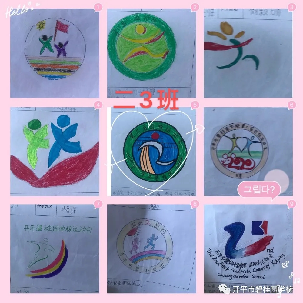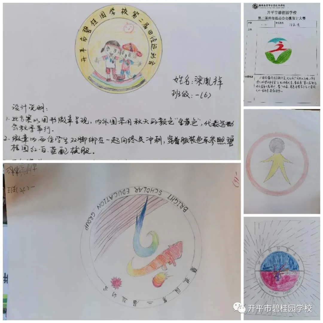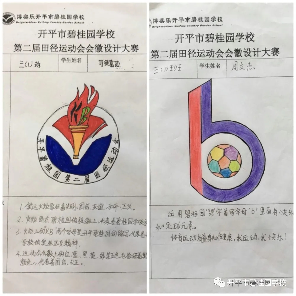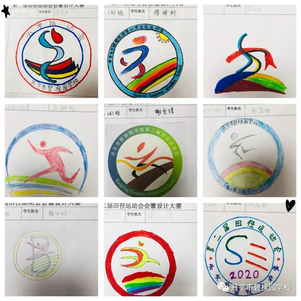 秋高气爽彩旗飘,开碧学子设计妙。会徽是每届校运会灵魂之所在,为弘扬校园体育文化,展示学生素质教育成果与精神风貌,我校德育处以“开碧学子必做100件事”为载体,开展了开平市碧桂园学校第二届校徽设计大赛活动,向全校幸福学子征集运动会会徽设计作品,同学们都积极参与,踊跃投稿,经过大家的精心设计,形式新颖而又富有运动意义的三十多幅作品入选了我校第二届田径运动会会徽投票环节。