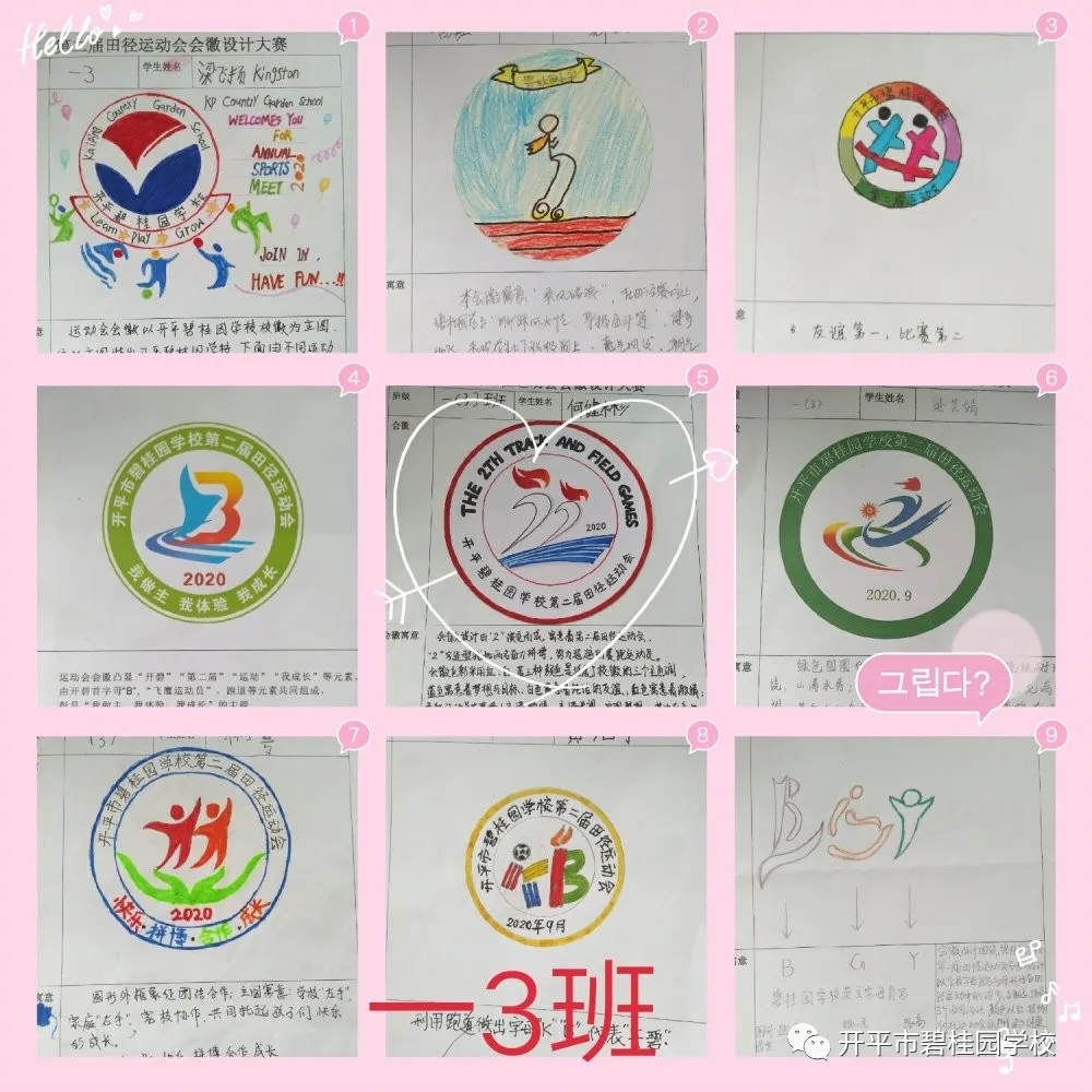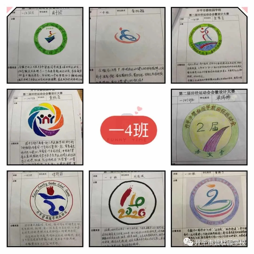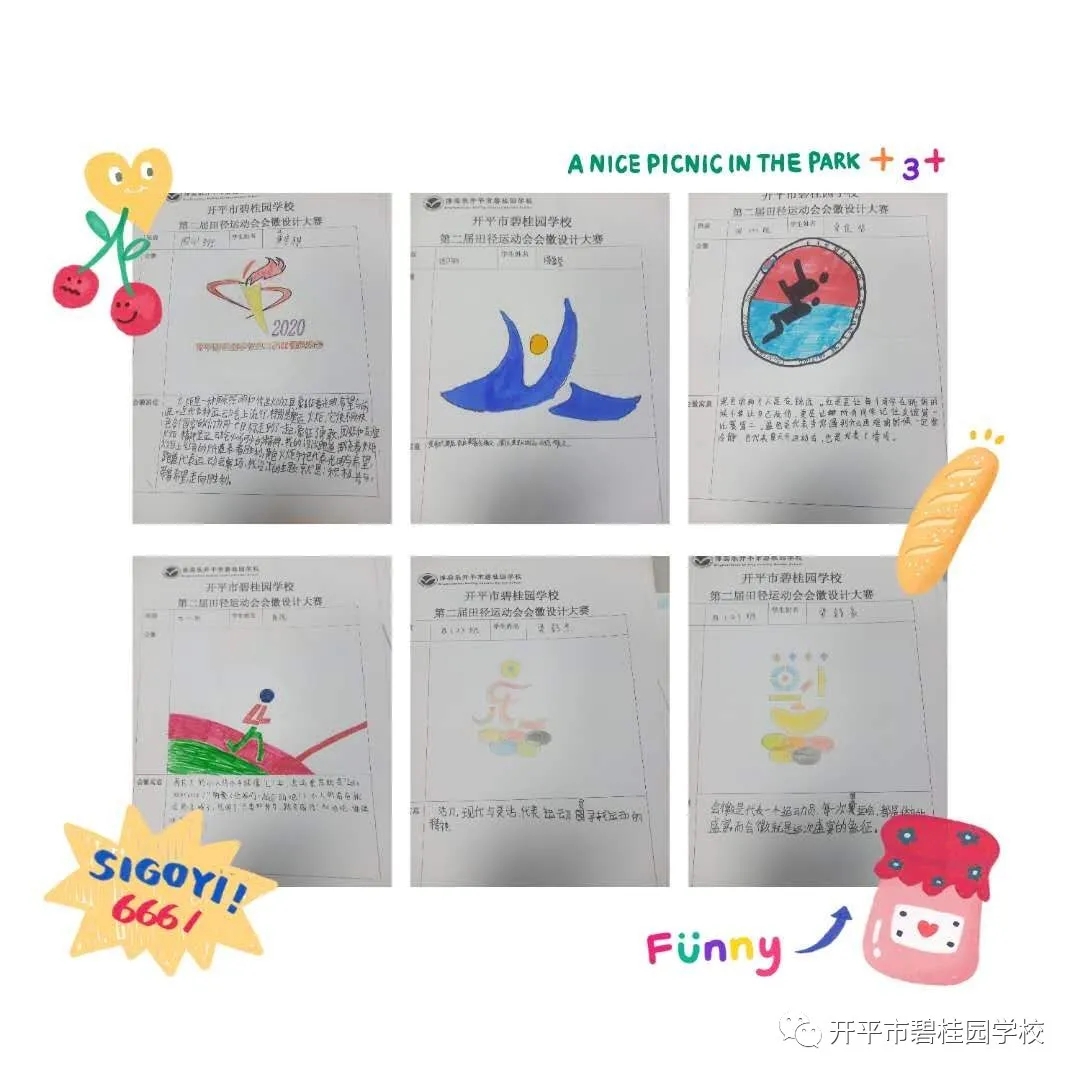 秋高气爽彩旗飘,开碧学子设计妙。会徽是每届校运会灵魂之所在,为弘扬校园体育文化,展示学生素质教育成果与精神风貌,我校德育处以“开碧学子必做100件事”为载体,开展了开平市碧桂园学校第二届校徽设计大赛活动,向全校幸福学子征集运动会会徽设计作品,同学们都积极参与,踊跃投稿,经过大家的精心设计,形式新颖而又富有运动意义的三十多幅作品入选了我校第二届田径运动会会徽投票环节。