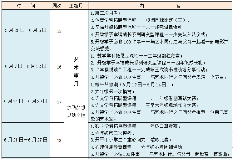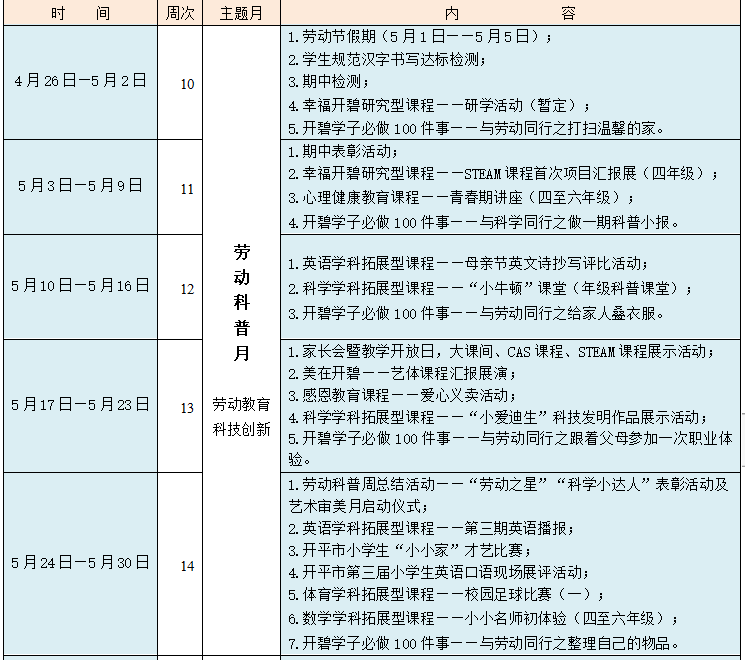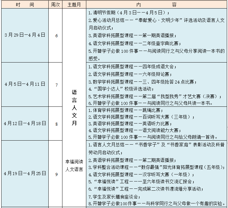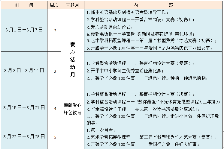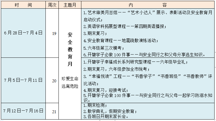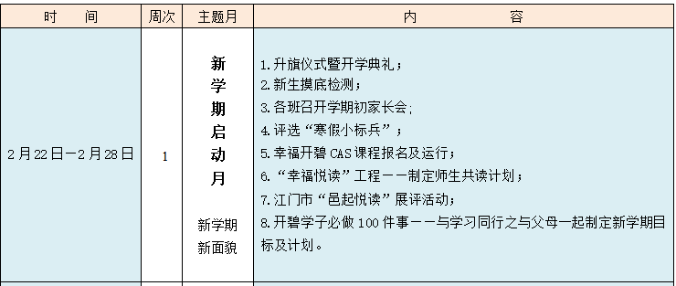 开平市碧桂园学校2020-2021学年度第二学期 行事历