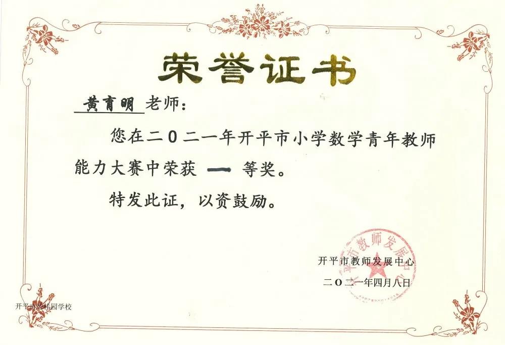 喜报——热烈祝贺黄育明老师在开平市小学数学青年教师能力比赛中荣获一等奖