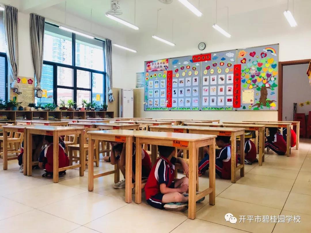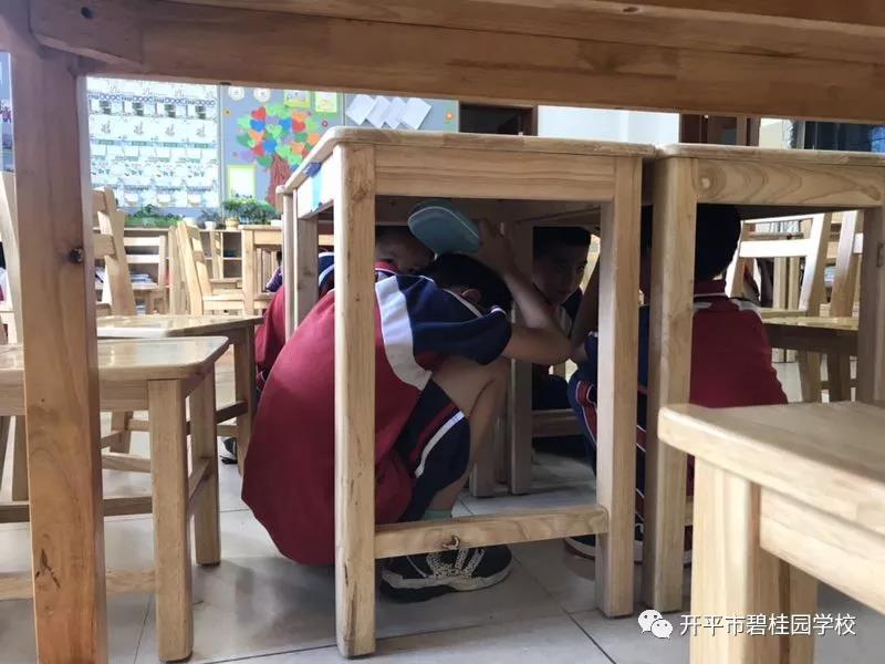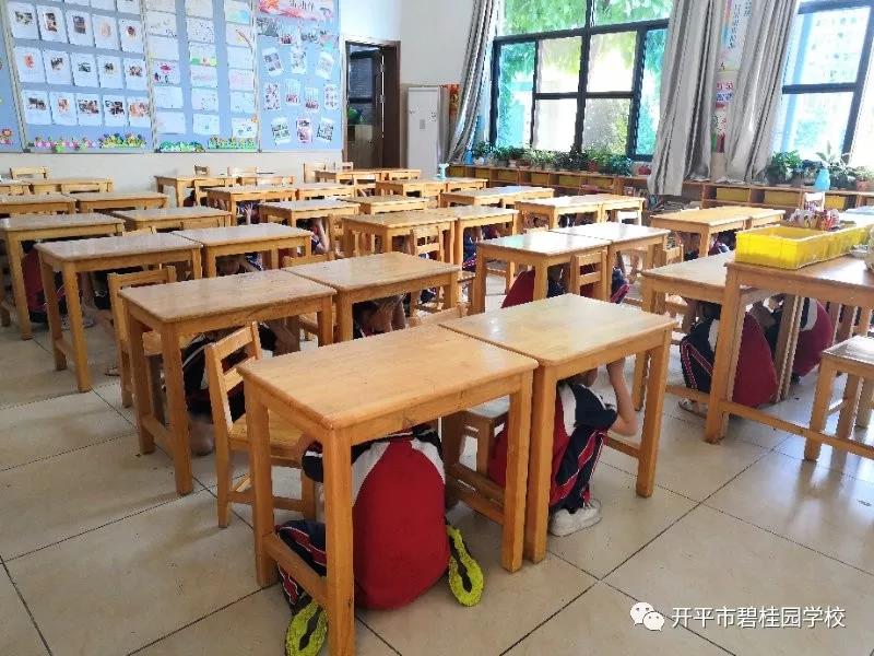 演习现场,伴着一声警报响起,同学们立即用书本保护头部,躲到课桌底下避震。警报解除后,同学们在教师的带领下按照预定的疏散路线迅速撤离到足球场。整个应急疏散演练参与师生共400多人,用时1分33秒,做到了“快、静、齐”有序疏散,没有拥挤推搡现象发生。