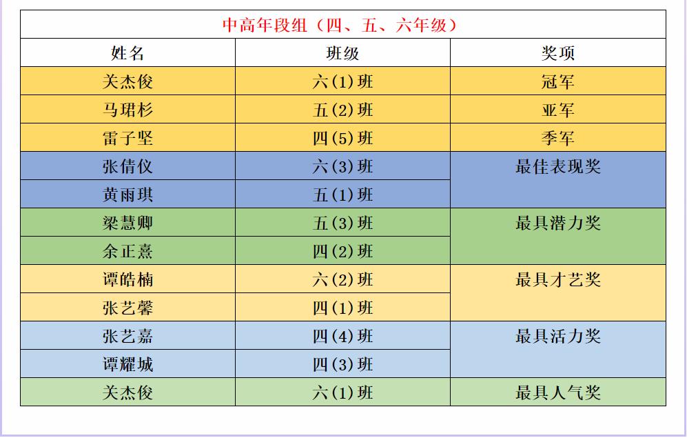 开平市碧桂园学校第四周“减负增效”作业公示栏