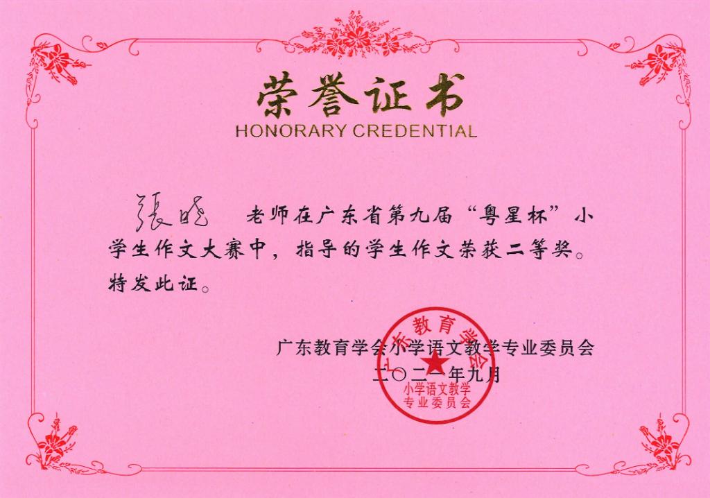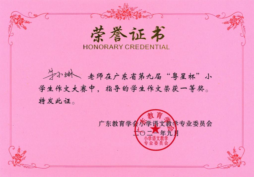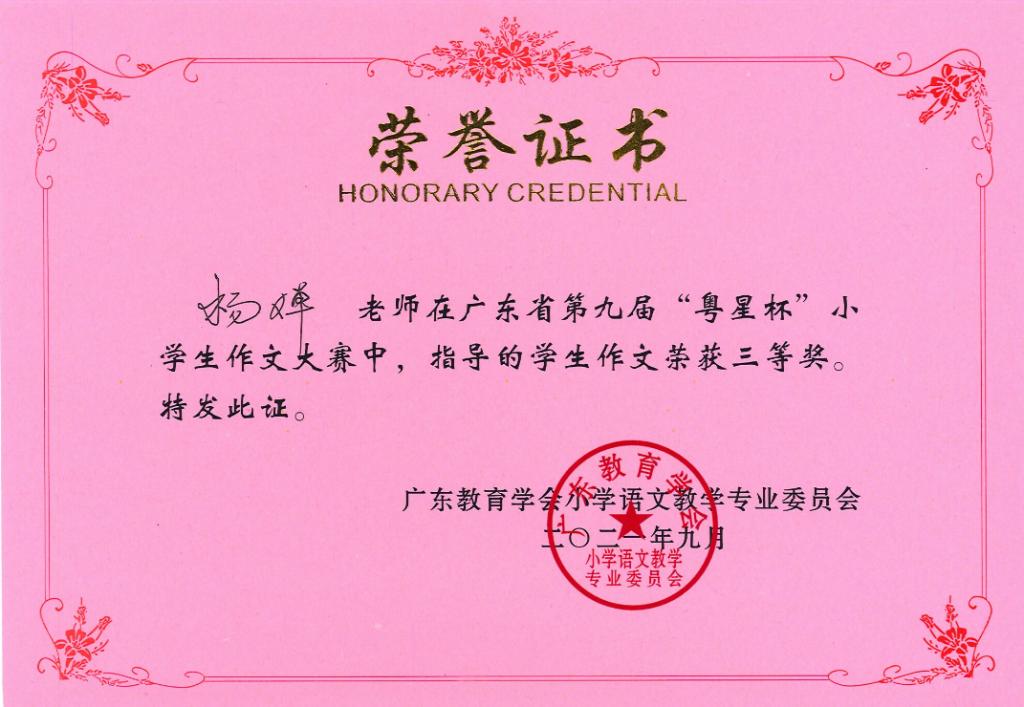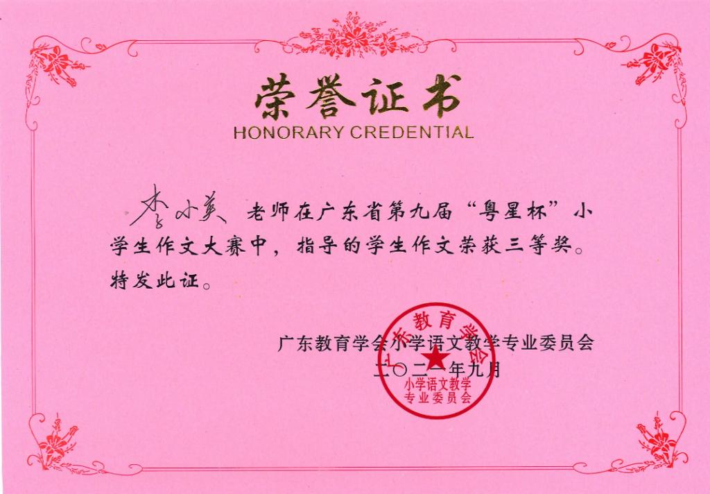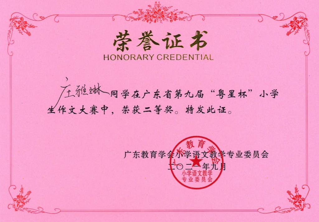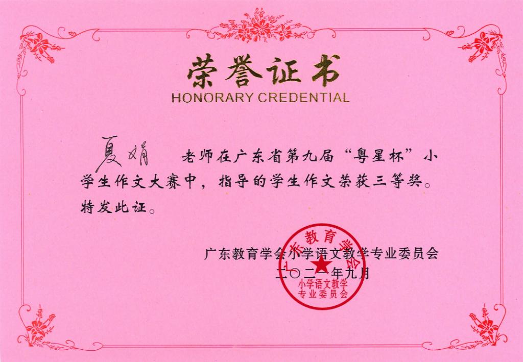 我校在广东省第九届“粤星杯”小学作文大赛中喜获佳绩