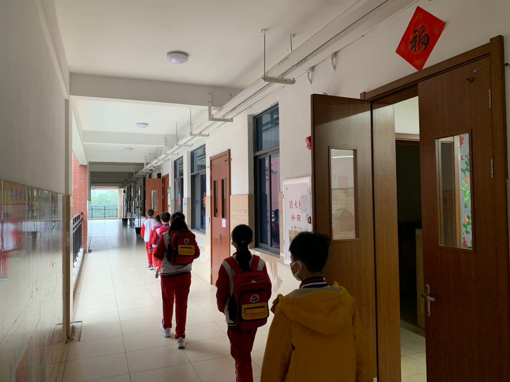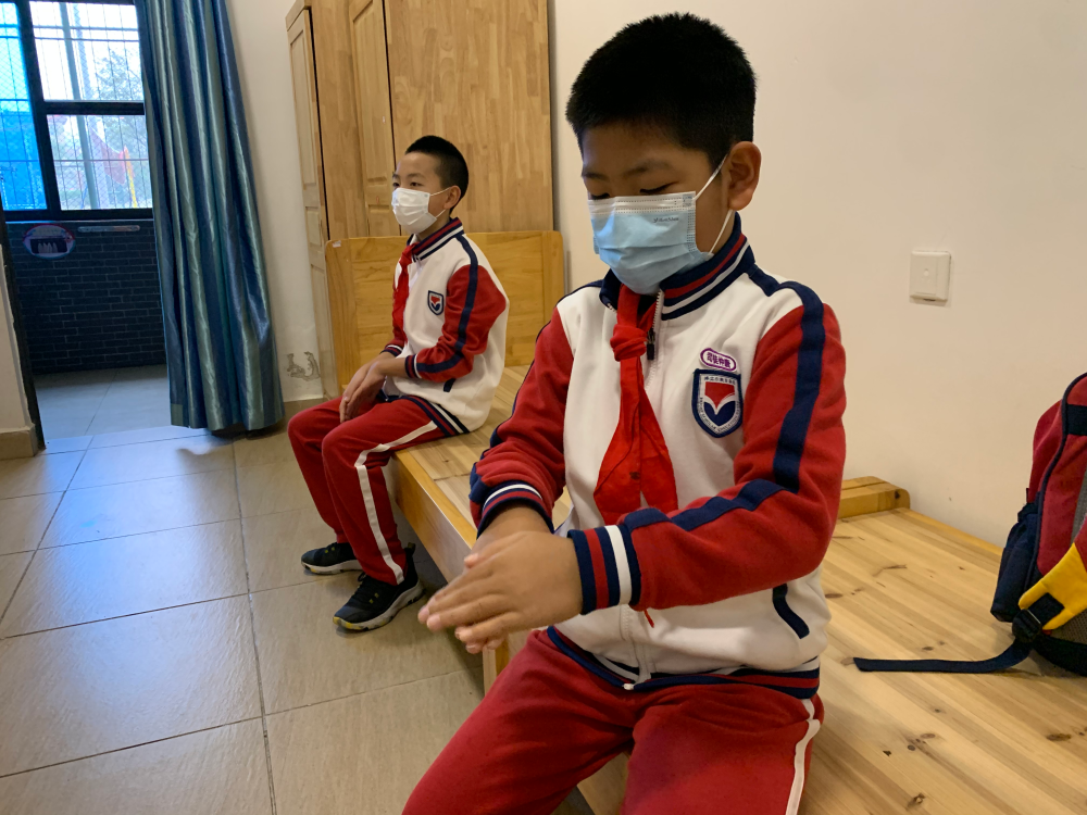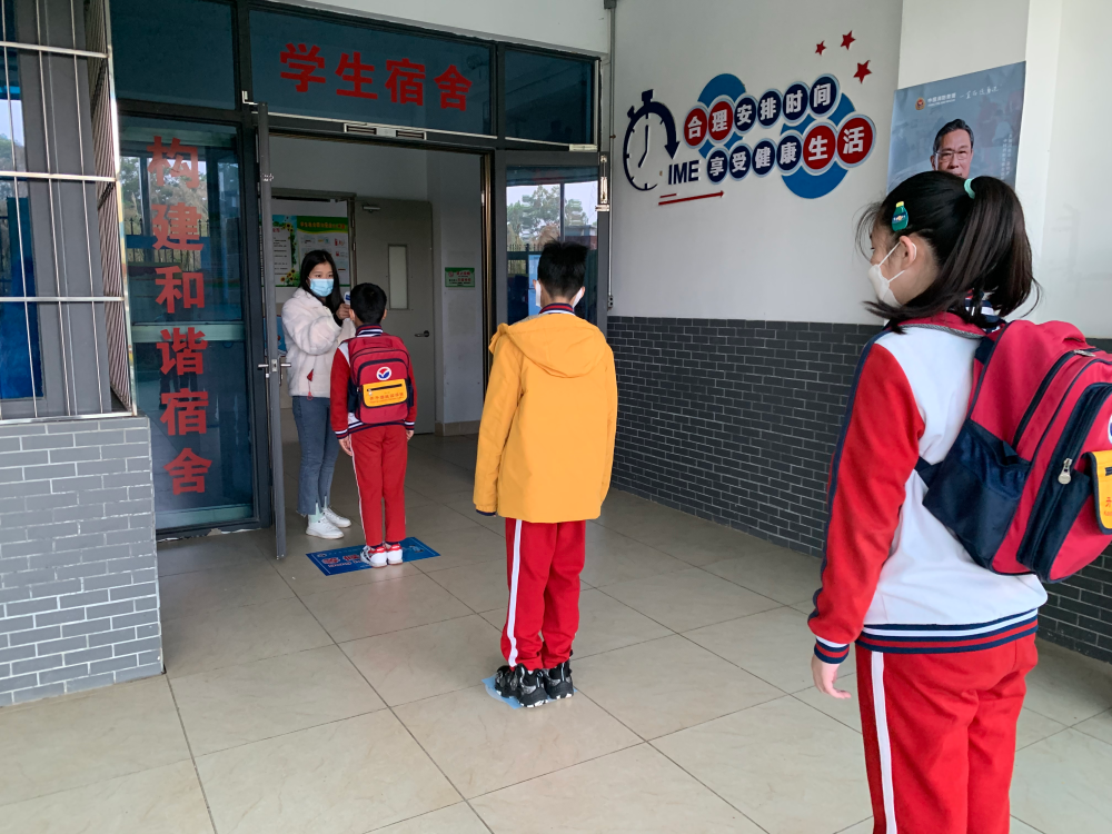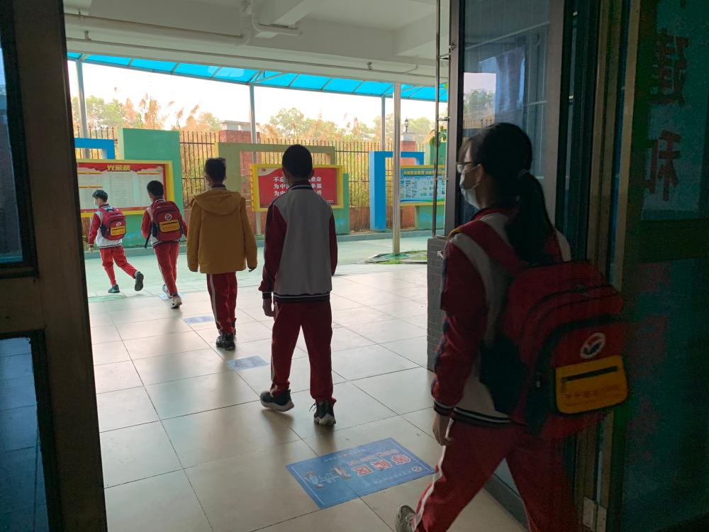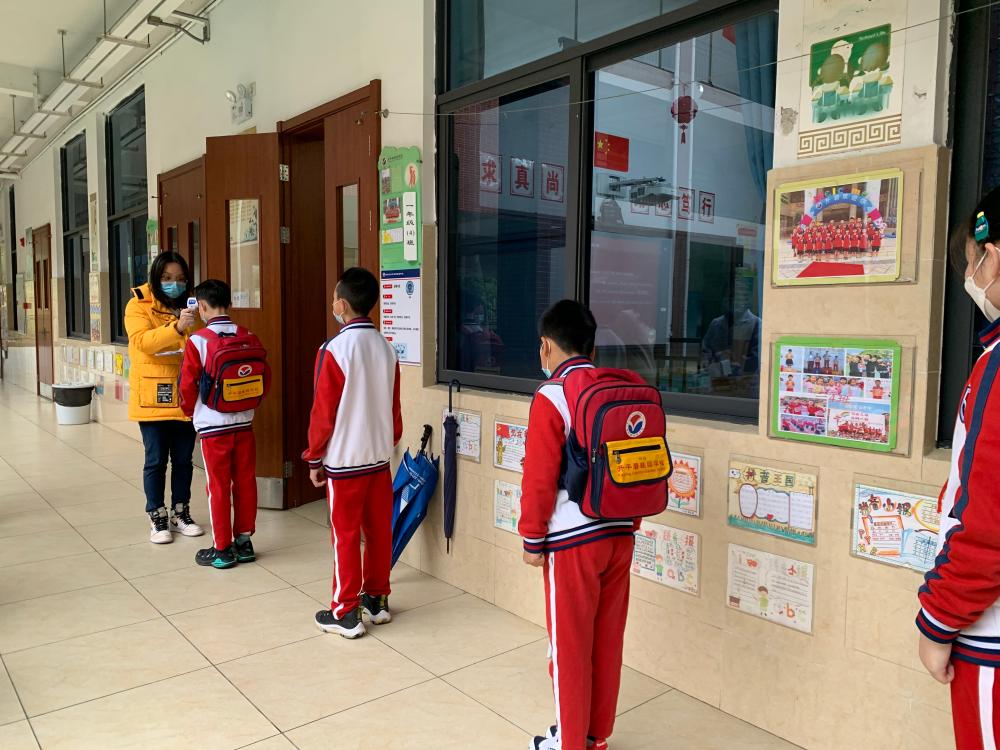 学生戴好口罩进入教室后,由班主任再次逐一对学生进行体温检测,体温全部正常,等候上课。