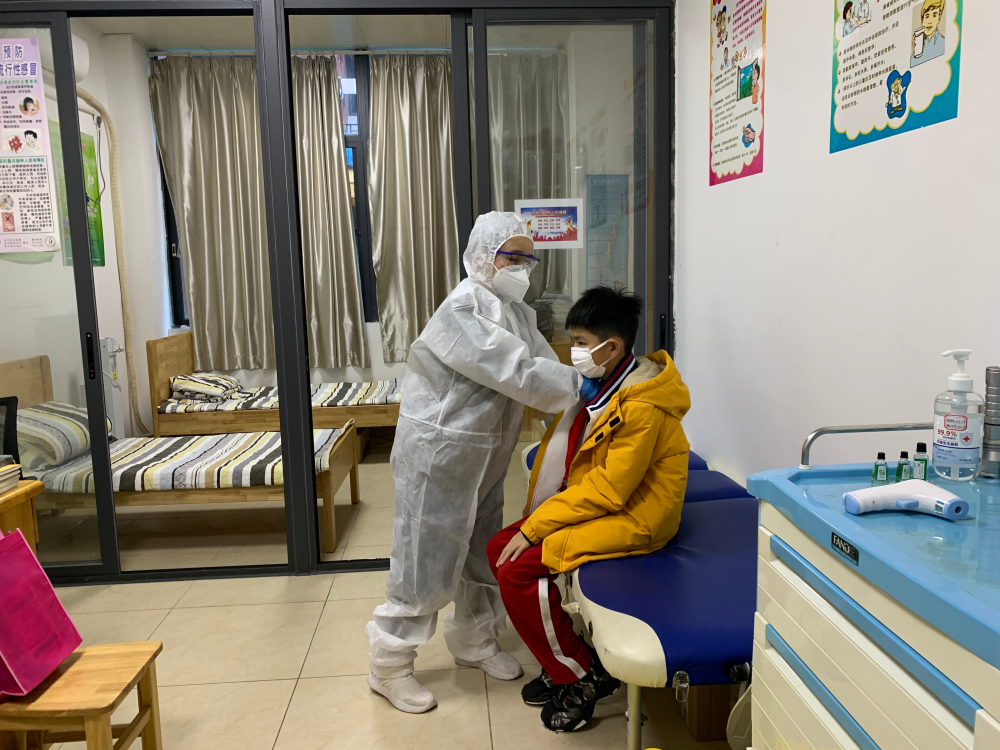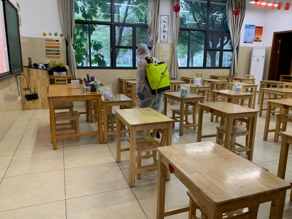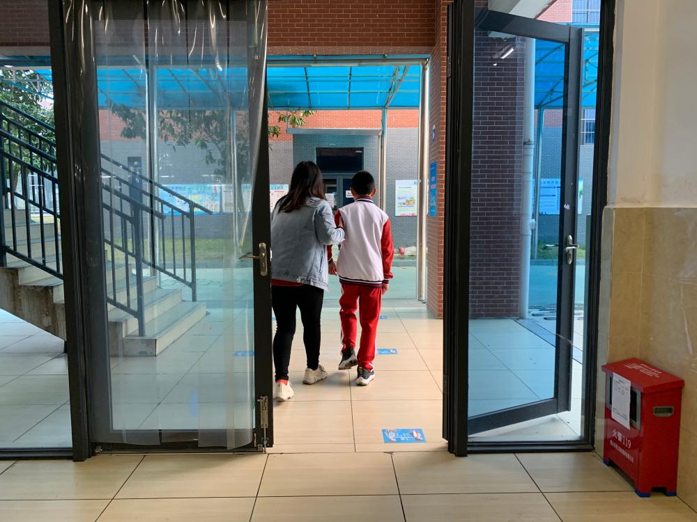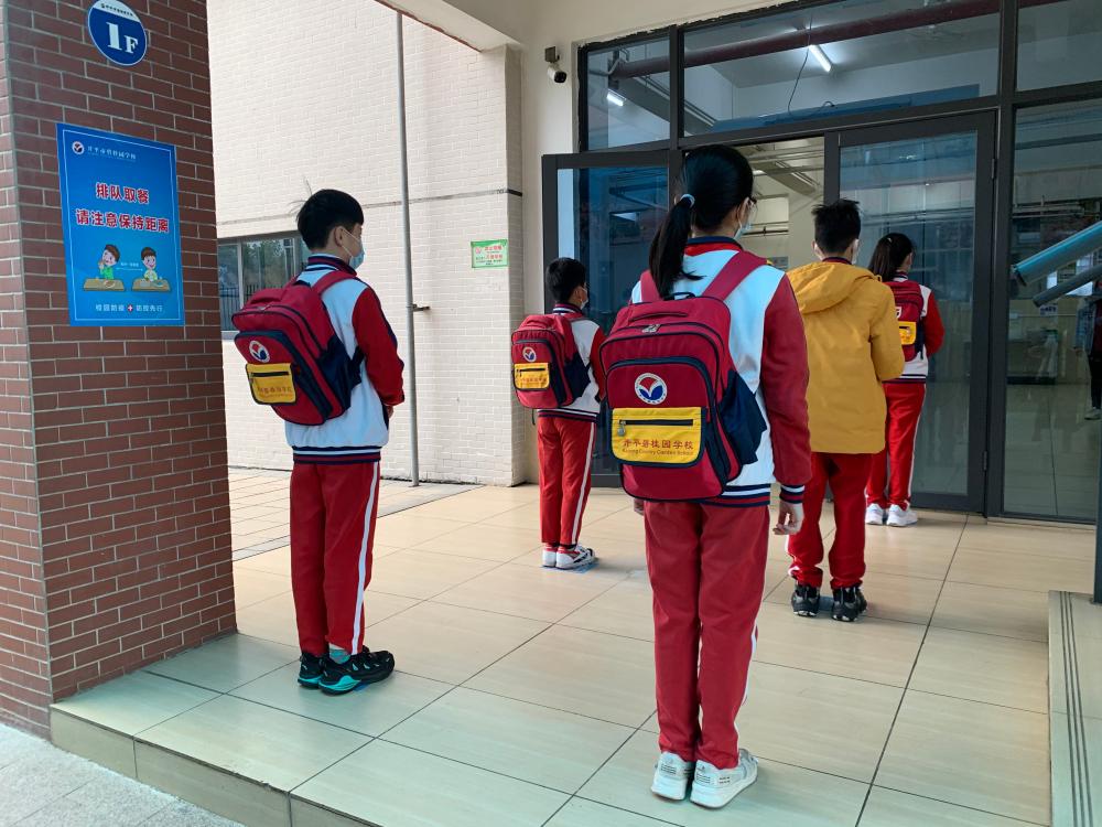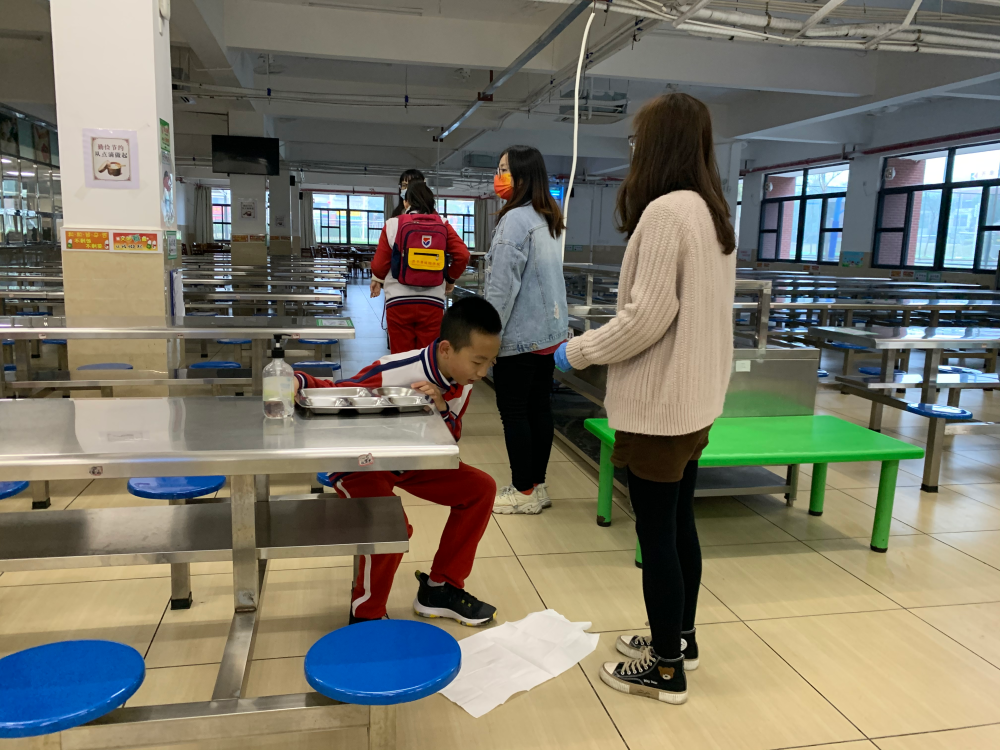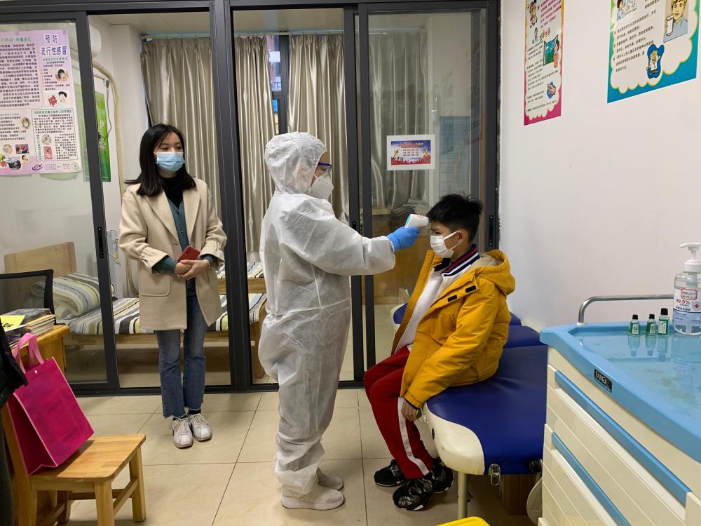 学生戴好口罩进入教室后,由班主任再次逐一对学生进行体温检测,体温全部正常,等候上课。