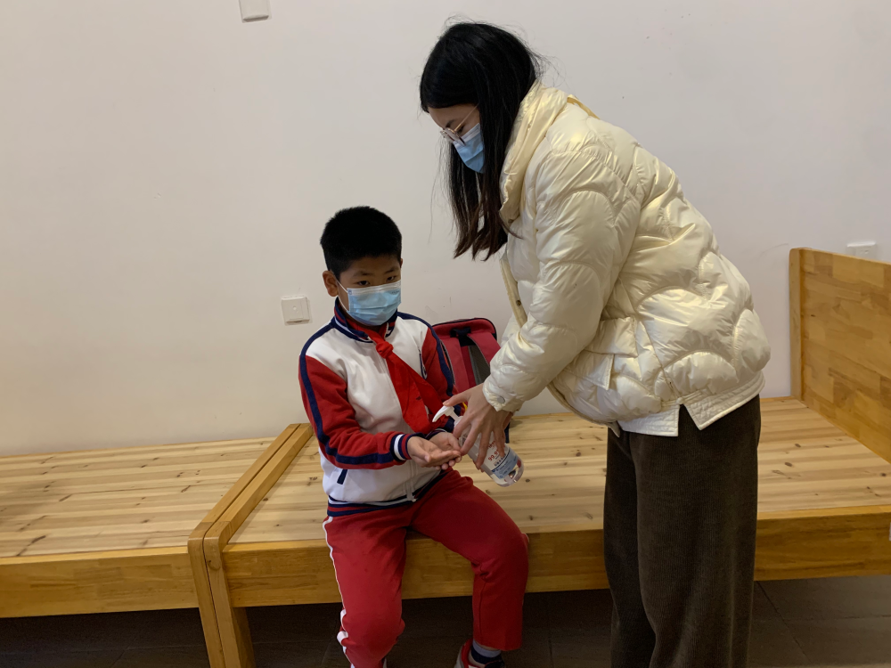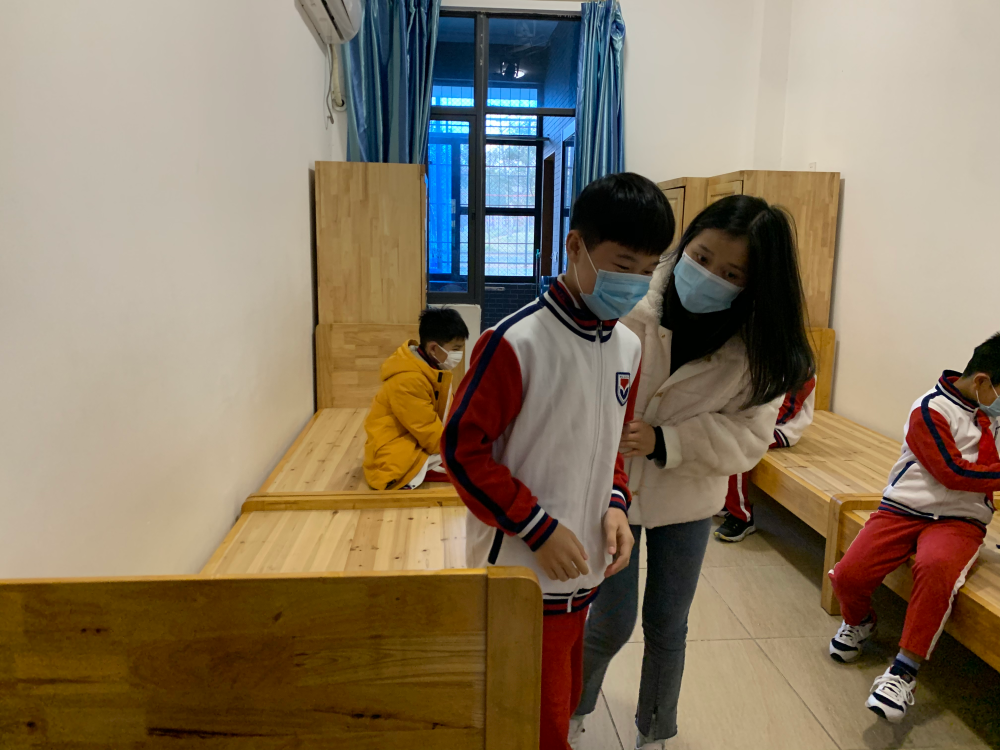 当面对学生体温异常时,我们立即启动应急预案,教师第一责任人迅速报告给学校异常情况处置负责人夏娟副校长,然后由班主任或段长带领学生到指定隔离室,同时将同教室内学生转移至备用教室之后,对教室进行消毒通风。其“八步”处理法来贯彻始终。