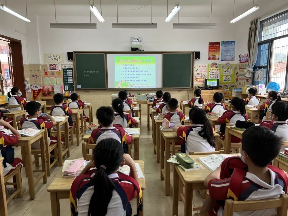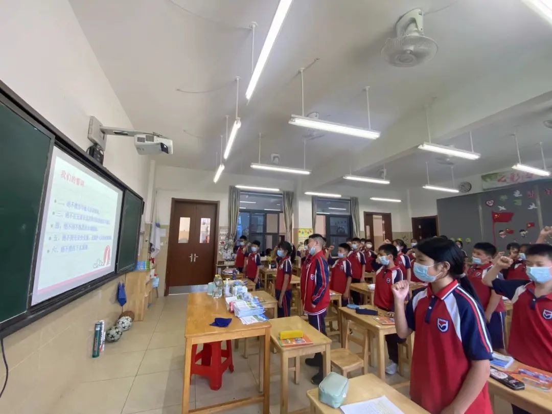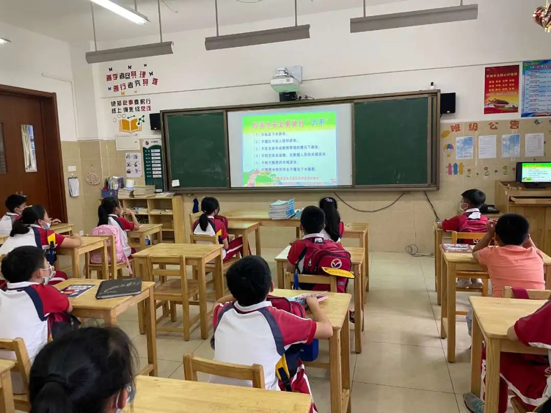 为预防学生溺水事故的发生,提高学生安全防范意识和自救能力,各班级举行主题为“珍爱生命 严防溺水”——防溺水安全教育主题班会。老师们围绕预防溺水事故要注意哪些方面、溺水后如何自救、发现有人溺水该怎么办、溺水者救上岸后有哪些急救方法等内容进行了详细讲解。在班会课的最后,学生们右手握拳进行防溺水宣誓。让学生们对溺水的危害有更深的认识。
