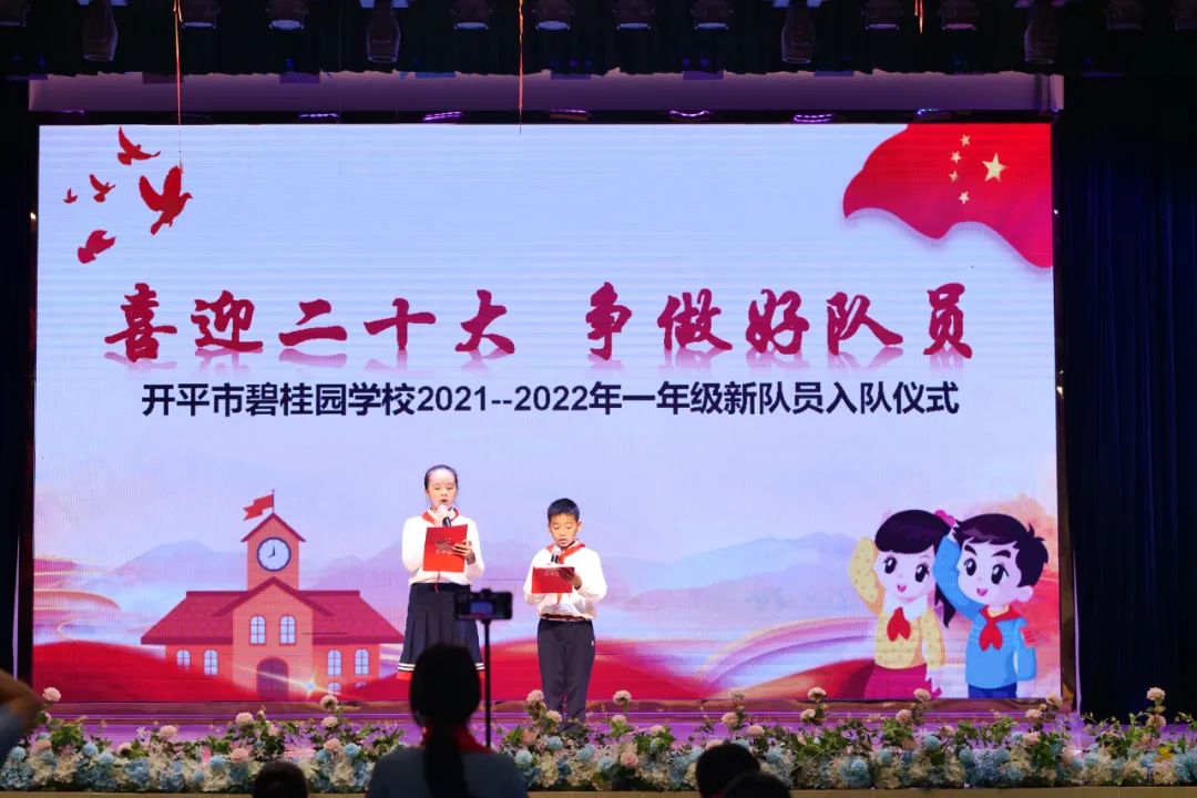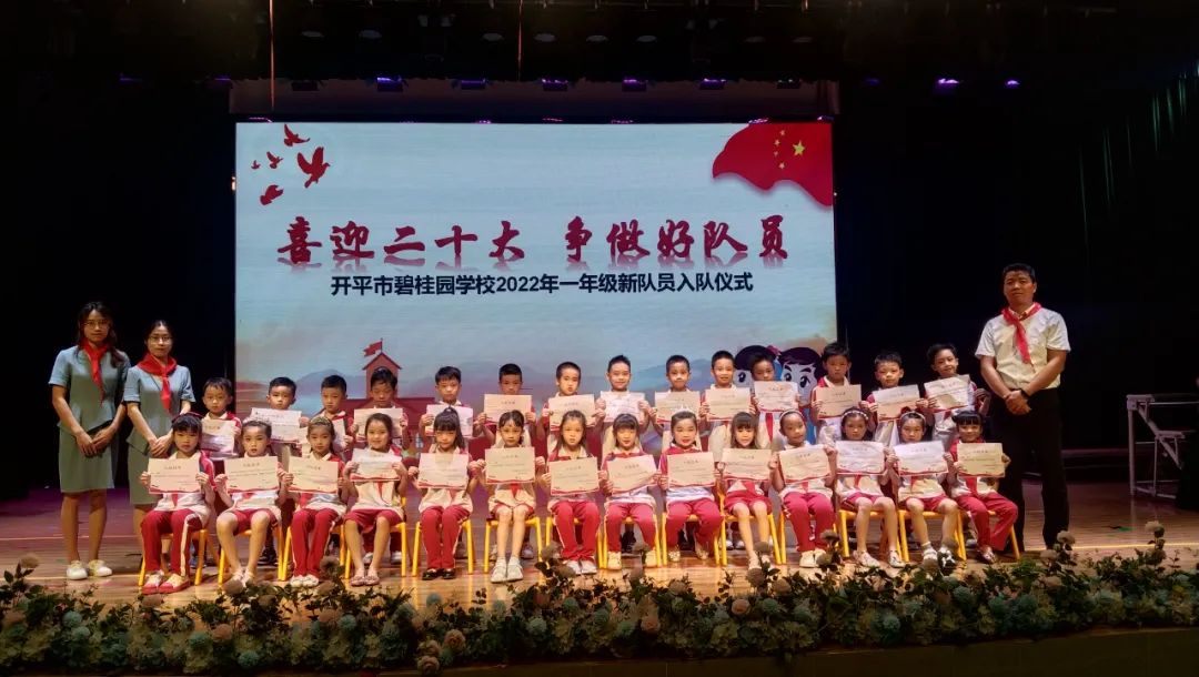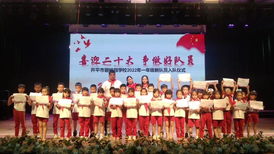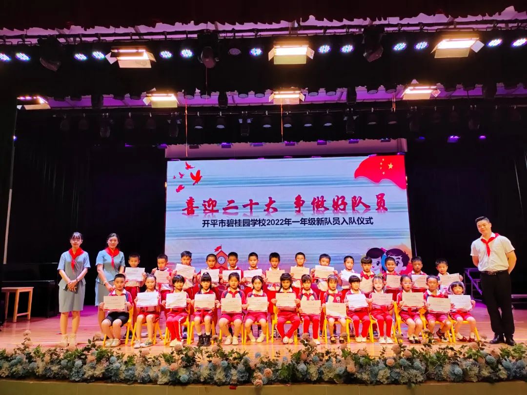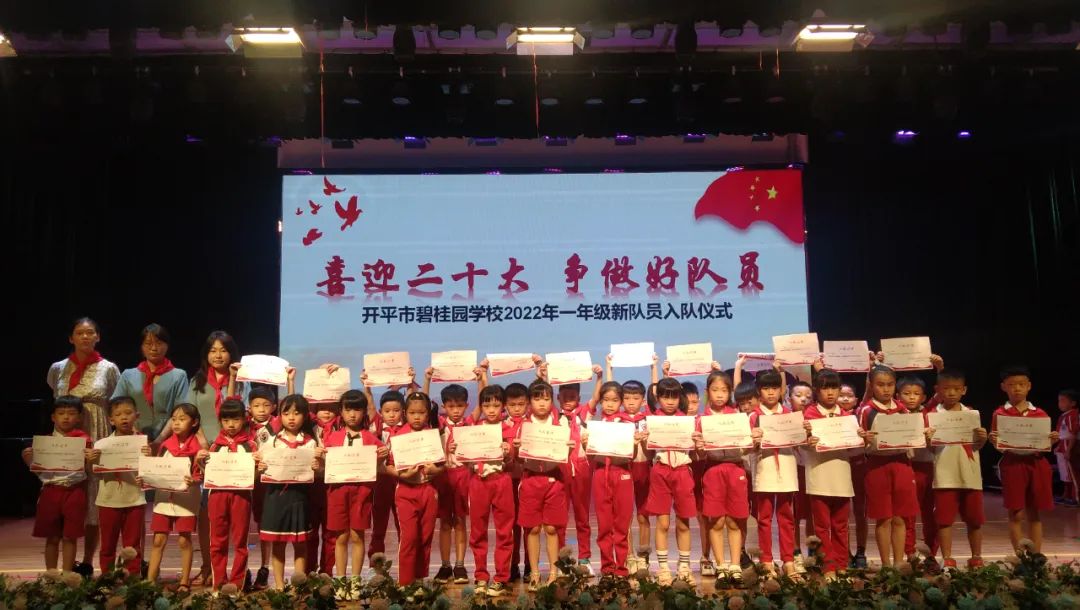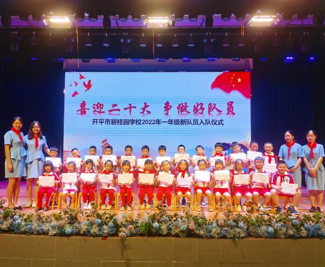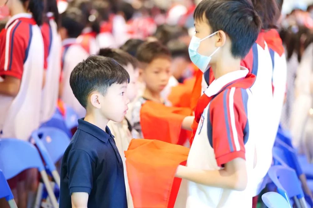 6月1日,队旗飘飘,鼓号声声,开平市碧桂园学校一年级的同学们迎来了小学生涯中一个重要的时刻,他们戴上了鲜艳的红领巾,光荣地加入了少年先锋队,成为了共产主义接班人!在雄壮的鼓号声中,少先队入队仪式正式开始。