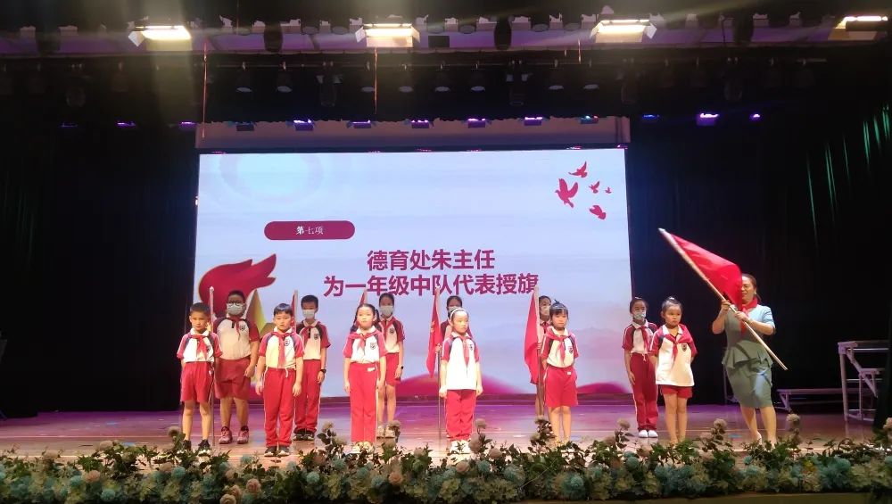 各中队辅导员从吴锦伦副校长手上接过聘书的那一刻、班长从德育处朱小琳主任手中接过中队旗的那一刻,一支支充满朝气、充满活力的新的少先队组织正式成立,相信班主任们会带领新队员们,沿着少年先锋队前进的足迹,以实际行动来展现少年儿童的良好精神风貌。