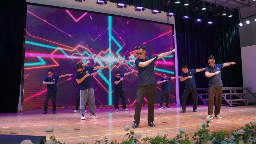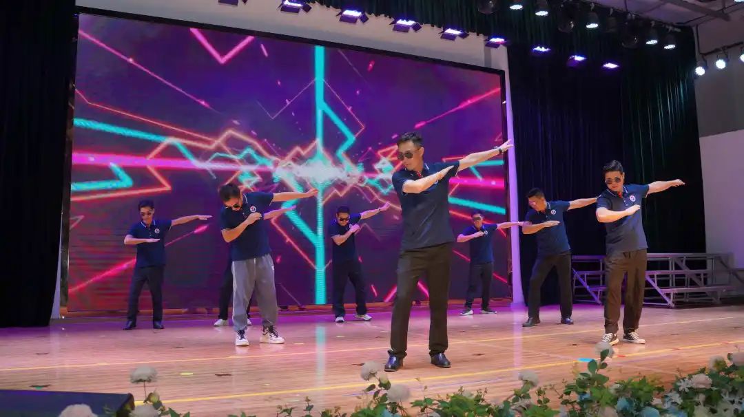 帅气的男老师们用精彩的舞蹈嗨翻全场,大家也忍不住上台一起舞蹈。