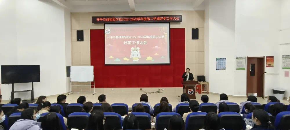 人人勤春来早,万物气象新。为确保新学期各项工作扎实有序开展,2月4日上午,开平市碧桂园学校2022—2023学年度第二学期开学工作大会在我校学术报告厅隆重召开。开平市碧桂园学校全体教职员工参加了会议,会议由夏娟副校长主持,谭家文校长在会上作开学工作报告。