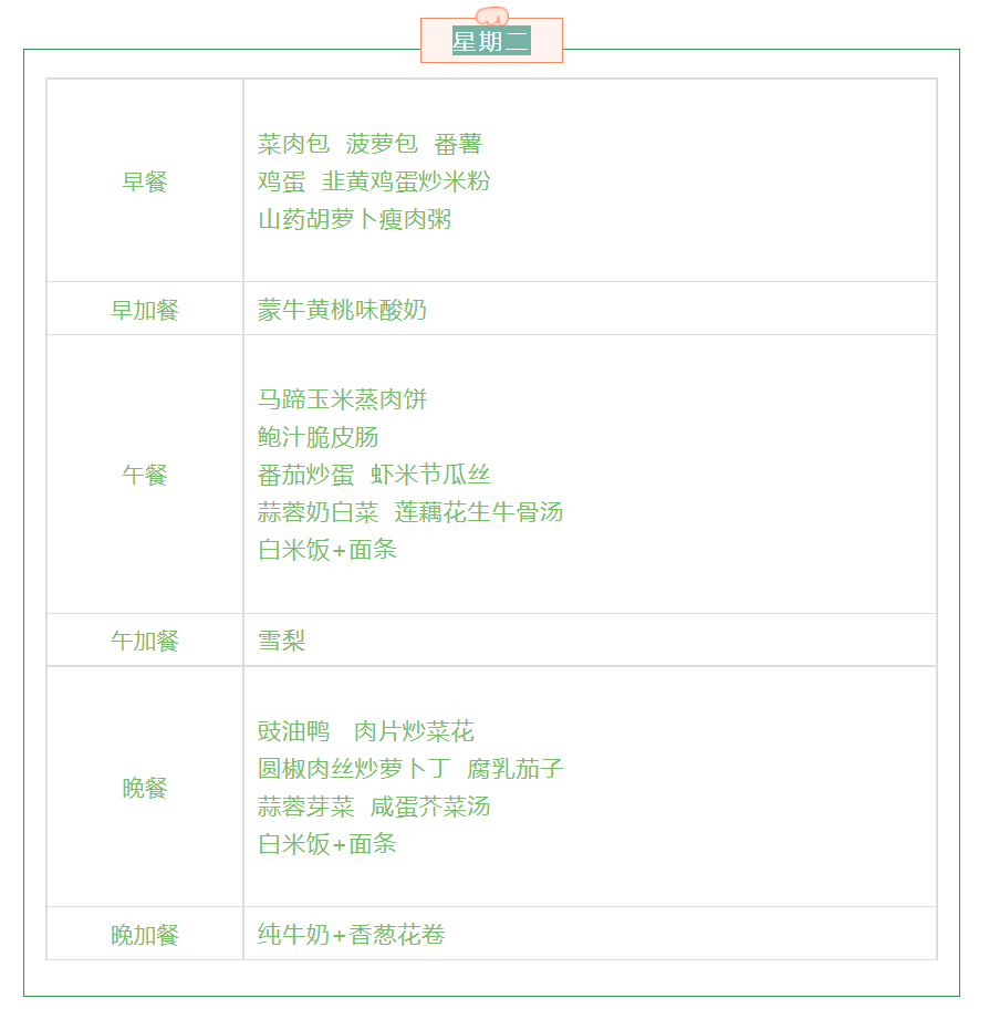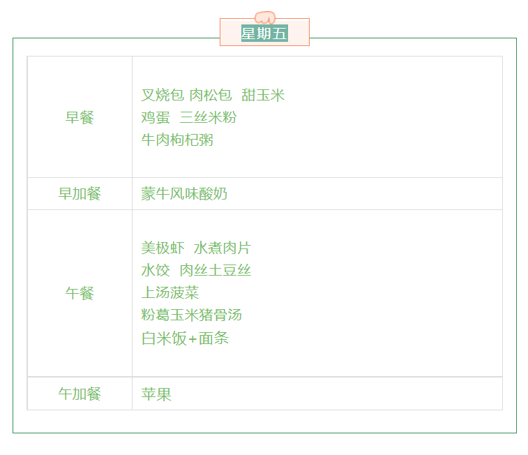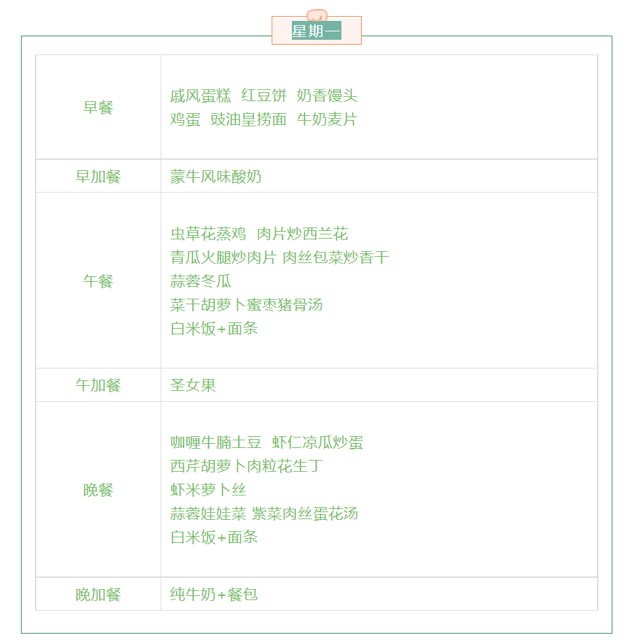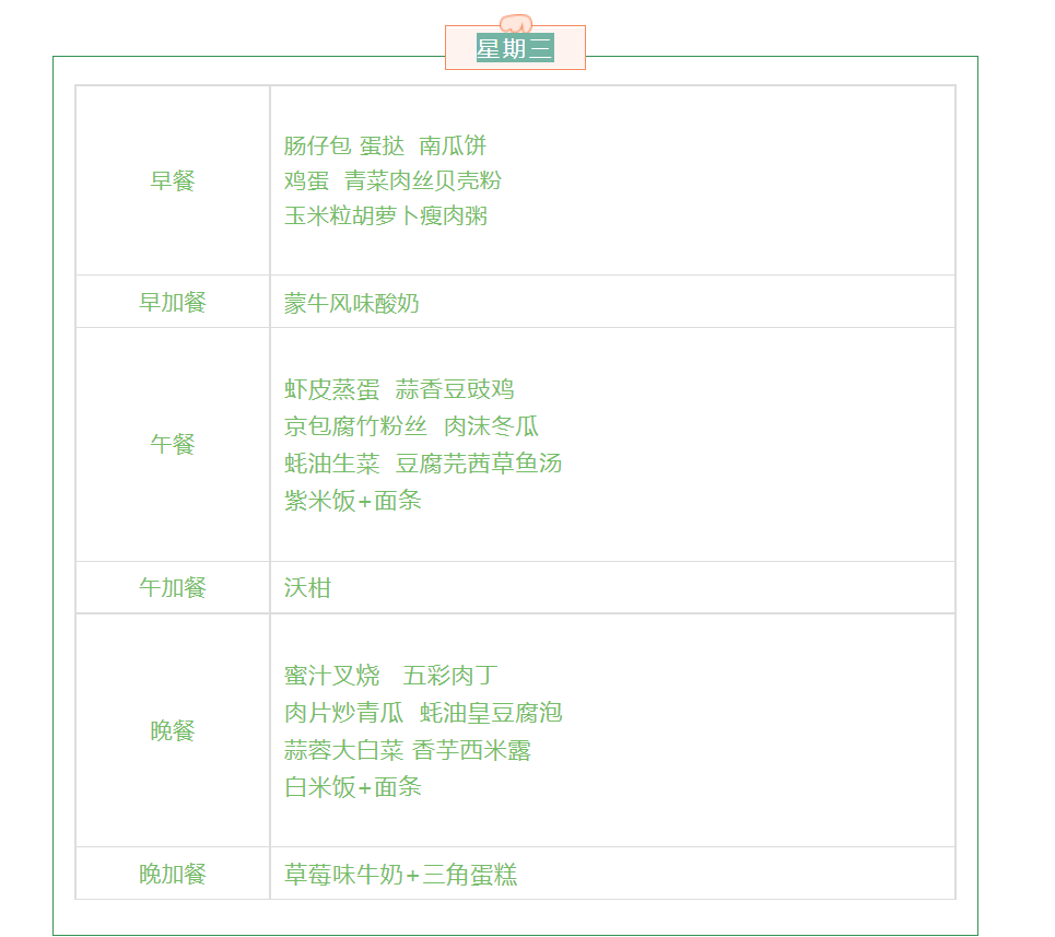 2.若孩子对以上食材有过敏或不宜进食的,请家长们提前告知班主任。