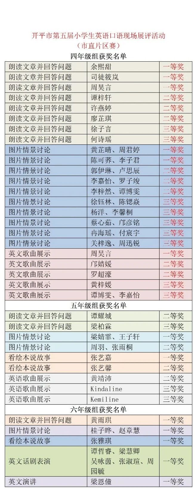飞扬风采 点燃青春--开平市第五届小学生英语口语现场展评活动(市直片区赛)