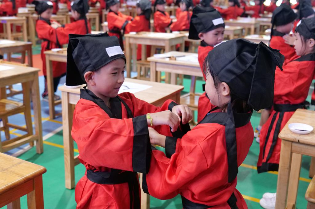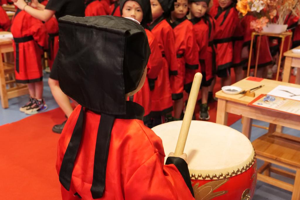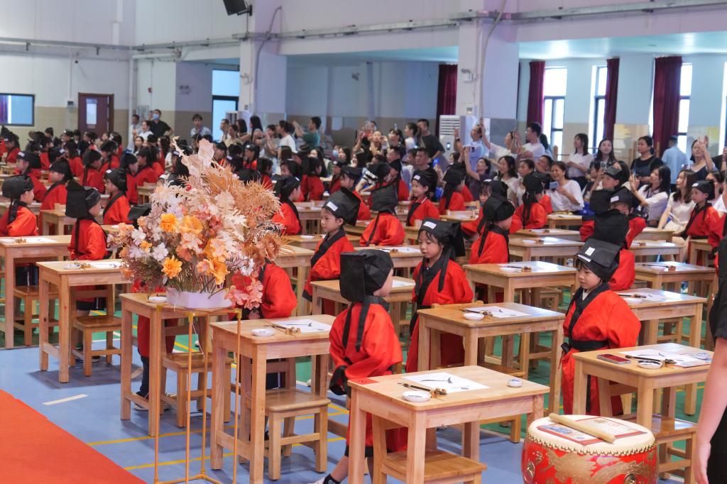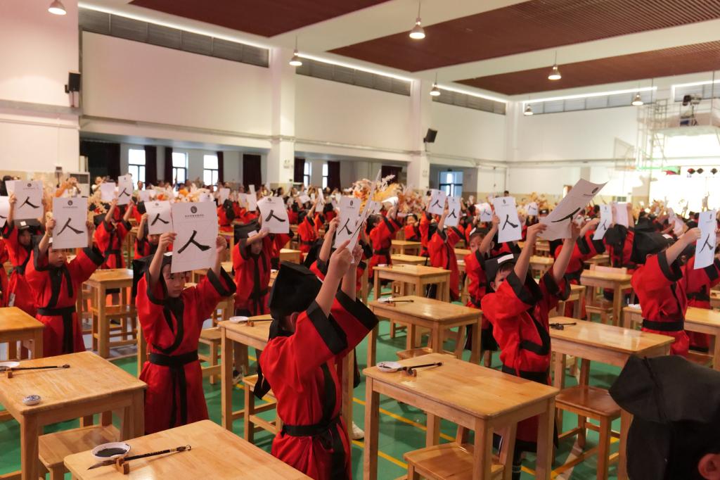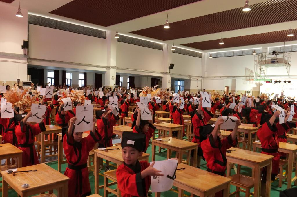 开笔礼是中国古代人生的首次大礼,俗称“破蒙”。一年级的学子们身穿汉服,在老师们的带领下步入“上学求知路”,活动在这一个个自信满满的步伐下拉开帷幕。