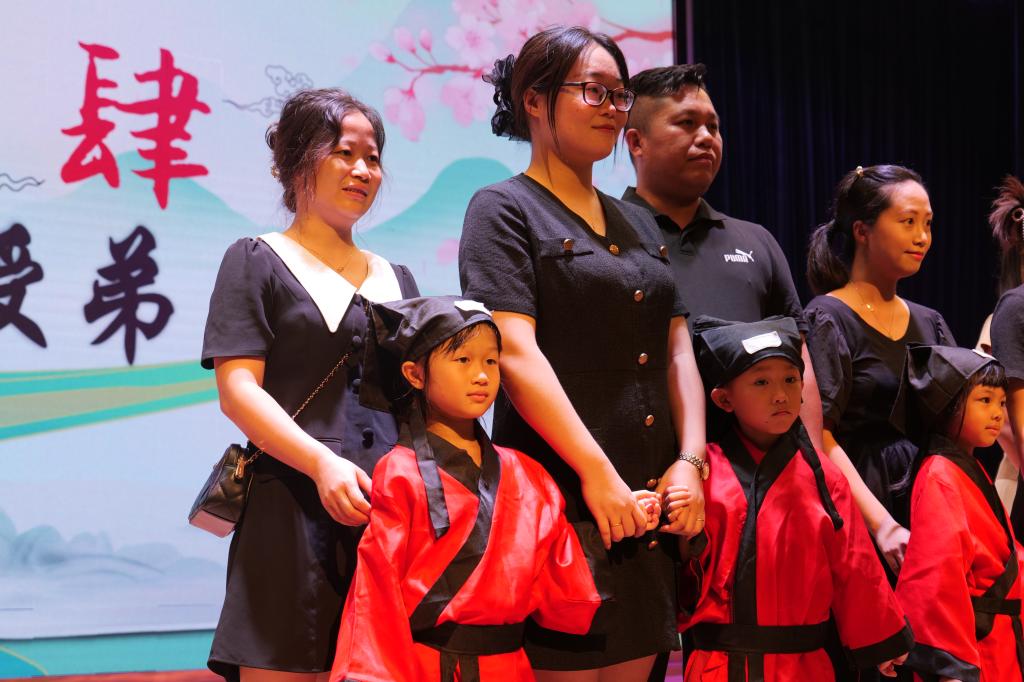 孩子们向师长行谢礼,表达尊师重教,热爱学习的决心。