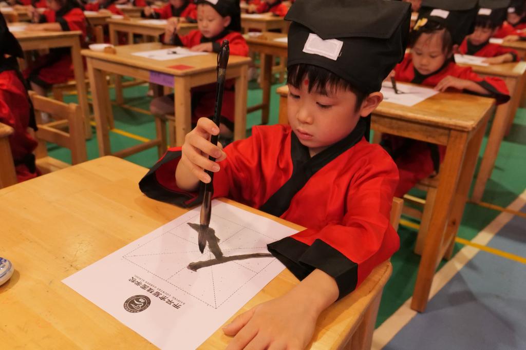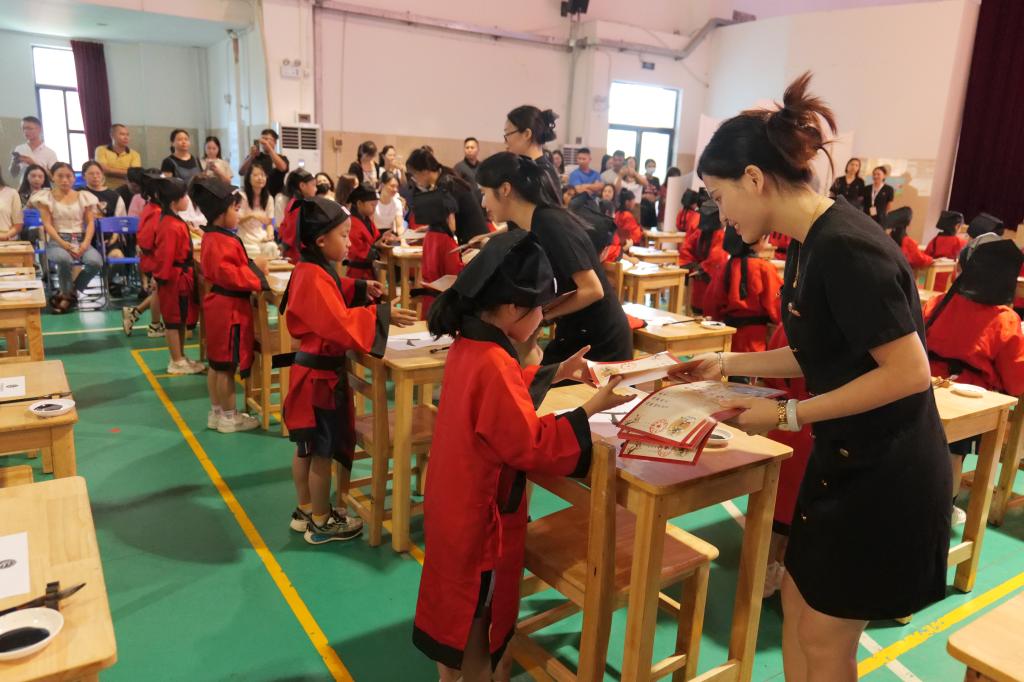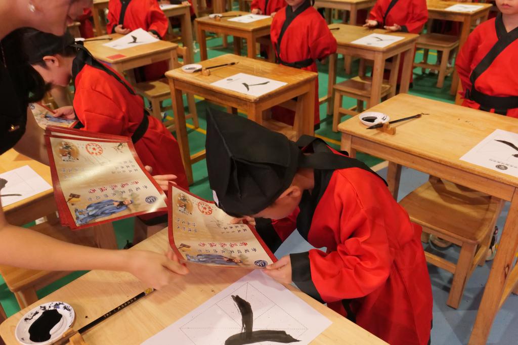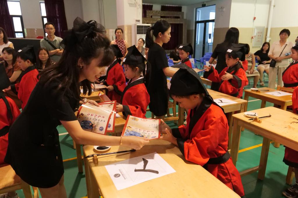 庄重的开笔礼仪式,让孩子在接受中华传统文化洗礼的同时,也象征着孩子们开始学习的新征途,为“好读书、读好书”的揭开崭新的一页。