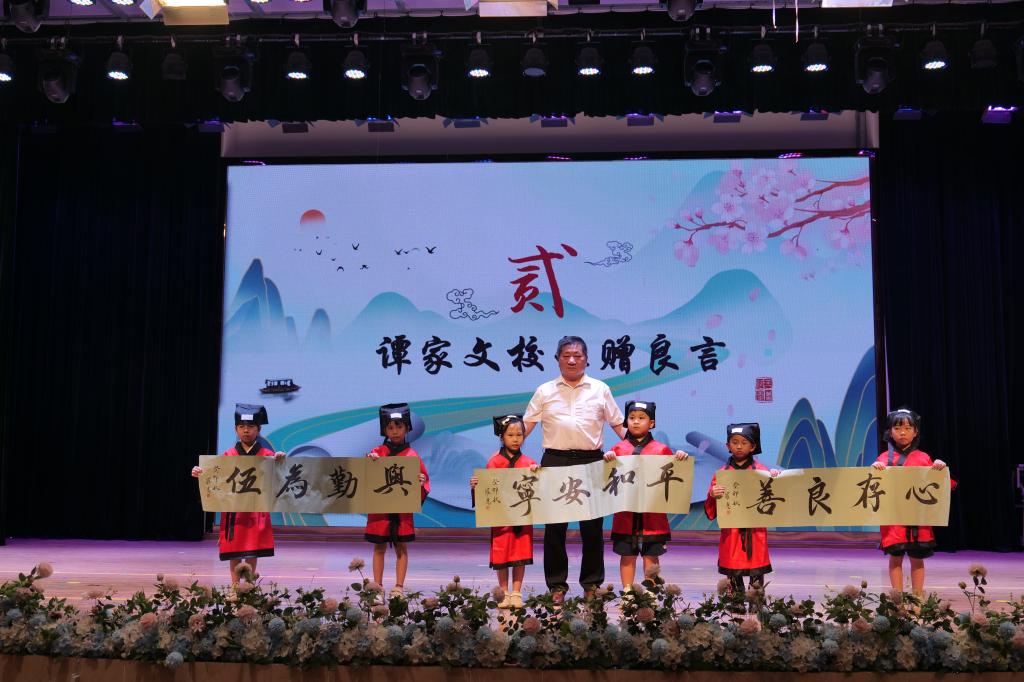 尊敬的谭校长为本次“开笔礼”赠良言。一年级各班学生代表上台接受赠言,谭校长的一字一句,一箴一言,无不饱含着对孩子们的殷切希望和美好祝福。