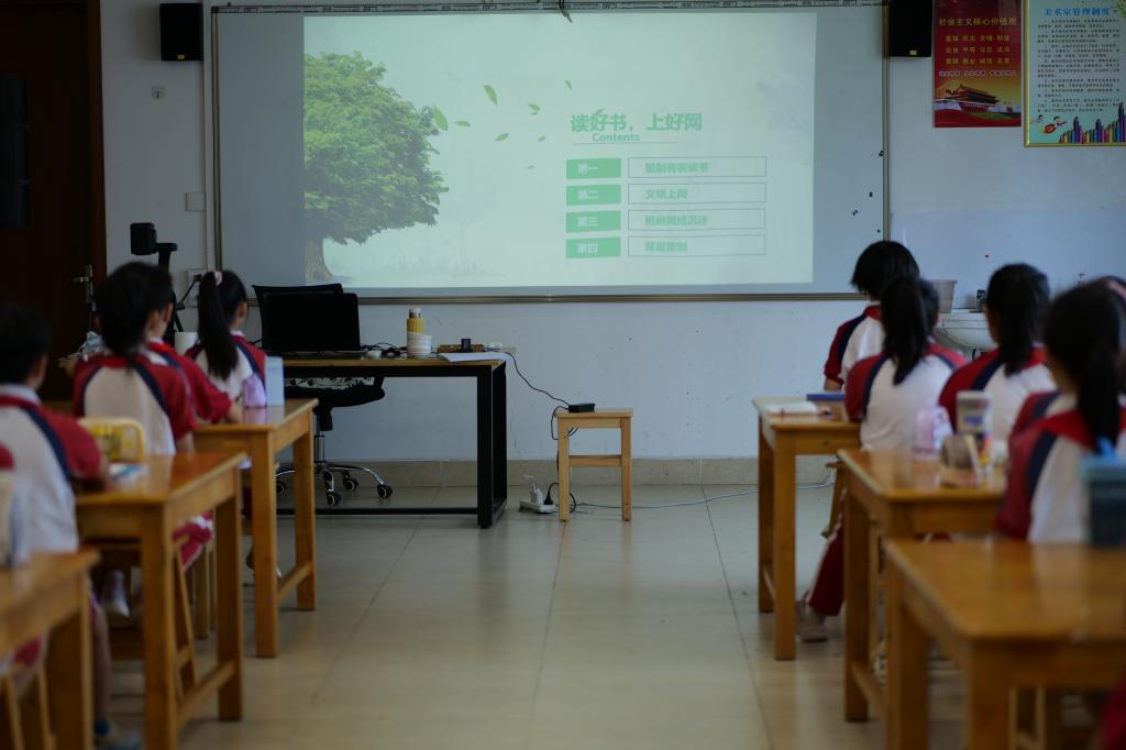 美术课上,美术老师以通俗易懂的语言向学生讲解“文明上网”的相关知识,指导学生正确使用网络。同时,还通过“以案说法”的形式向同学们讲解网络负面信息的危害,增强学生的法治观念和安全意识,树立正确的人生观、价值观,提高自我防范意识和保护能力。