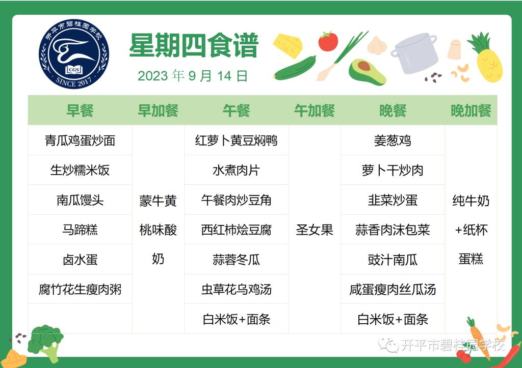 2.若孩子对以上食材有过敏或不宜进食的,请家长们提前告知班主任。