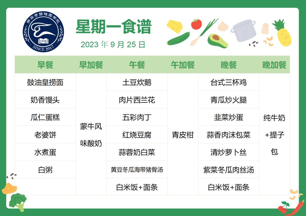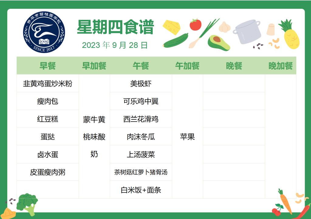 开平市碧桂园学校第五周自助餐食谱