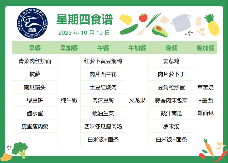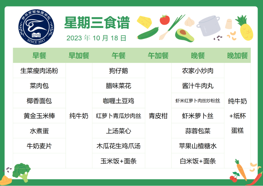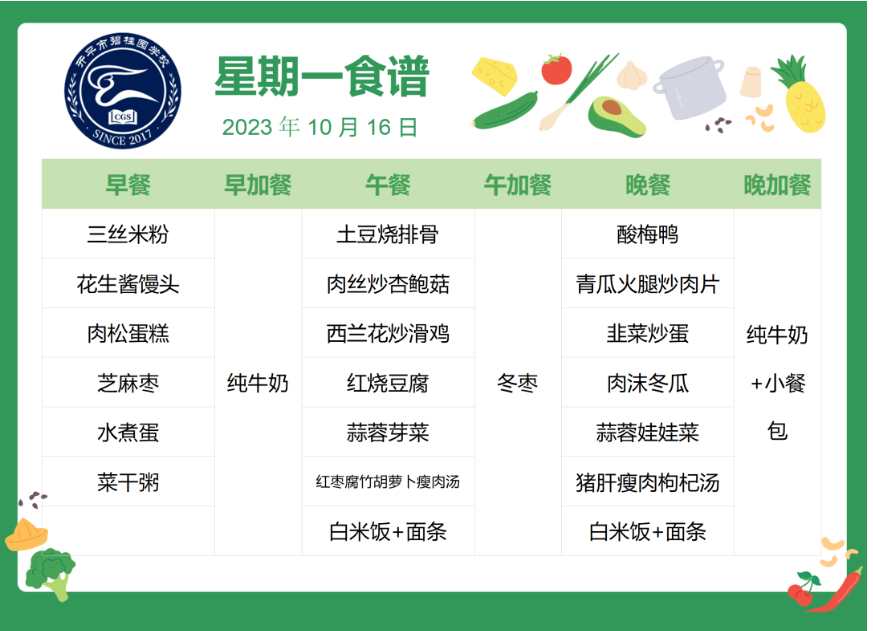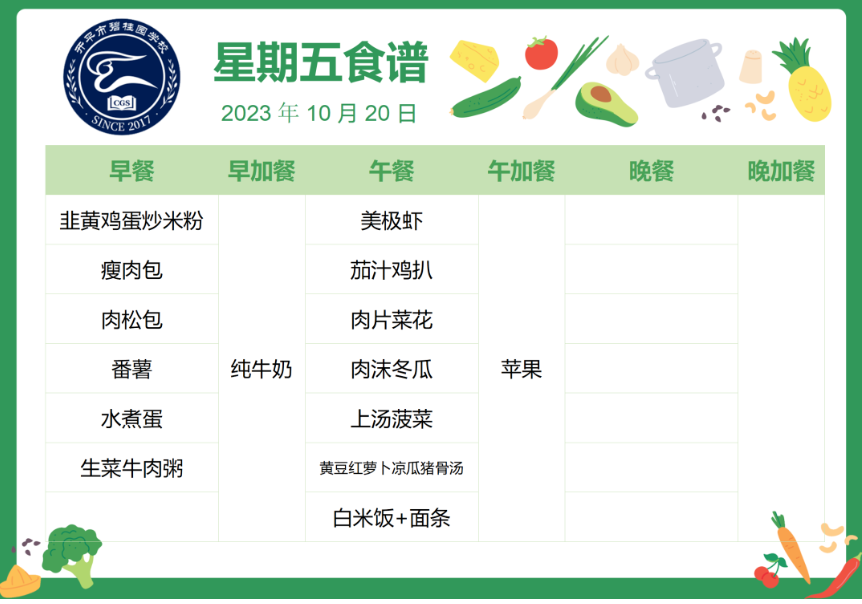 开平市碧桂园学校第八周自助餐食谱