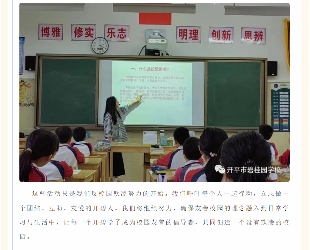 开平市碧桂园学校第四周“减负增效”作业公示栏