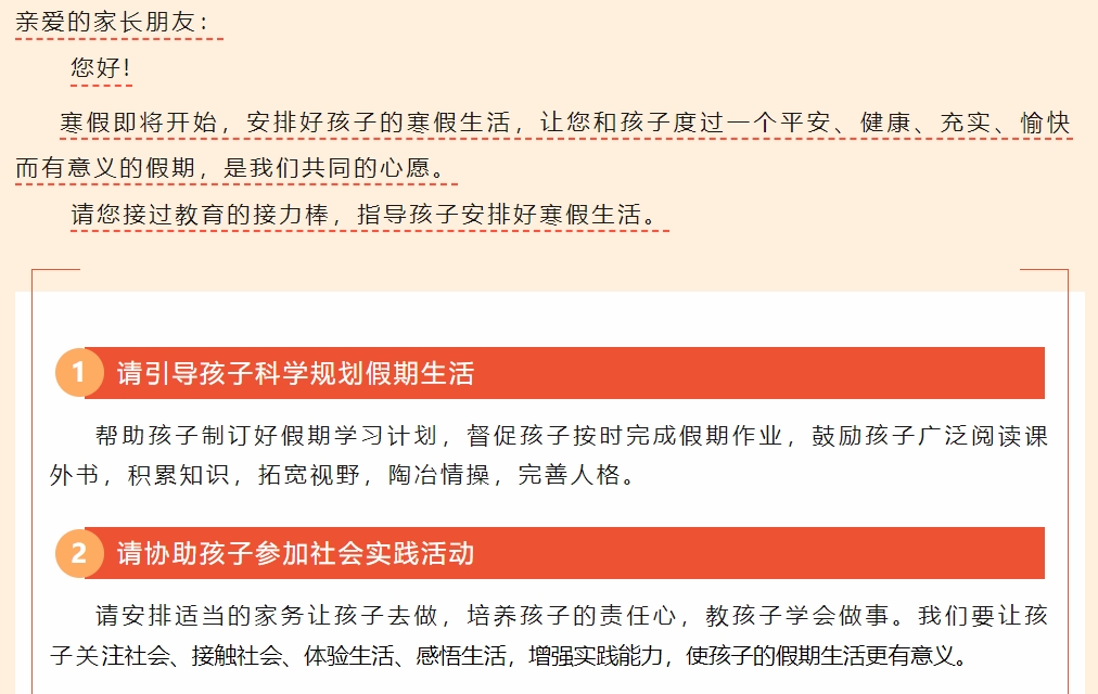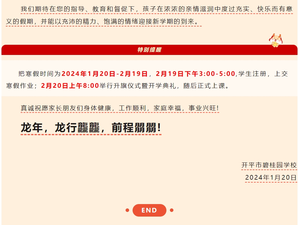 开平市碧桂园学校2023—2024学年第一学期寒假致家长的一封信