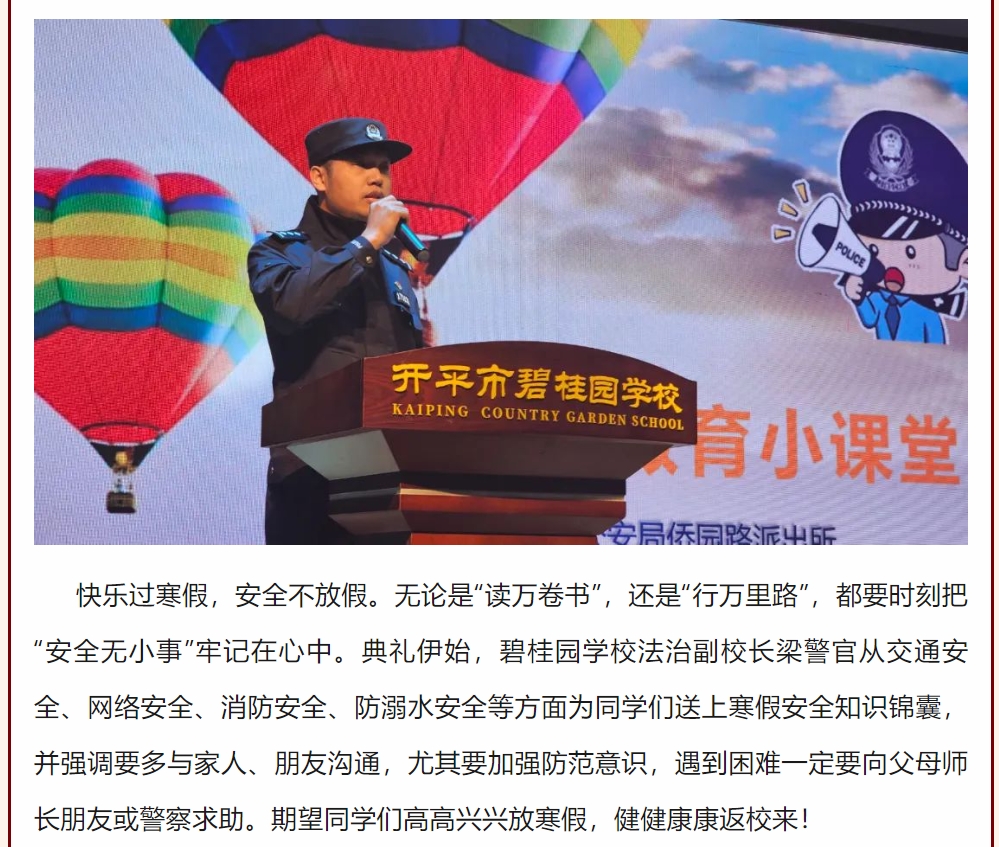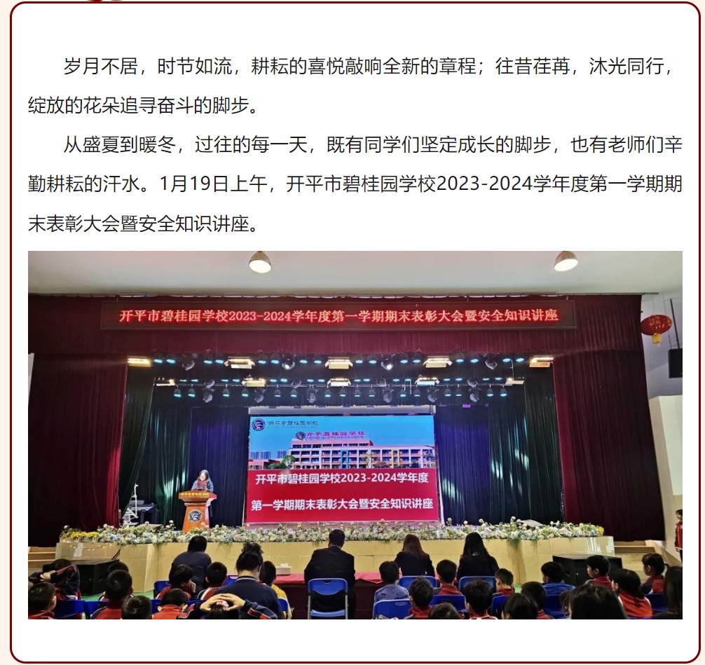 百舸争流奋者先 学子勤耕硕果盈——开平市碧桂园学校2023-2024学年度第一学期期末表彰大会暨安全知识讲座