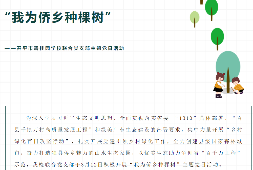 “我为侨乡种棵树”——开平市碧桂园学校联合党支部主题党日活动