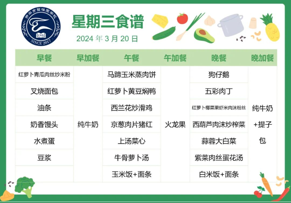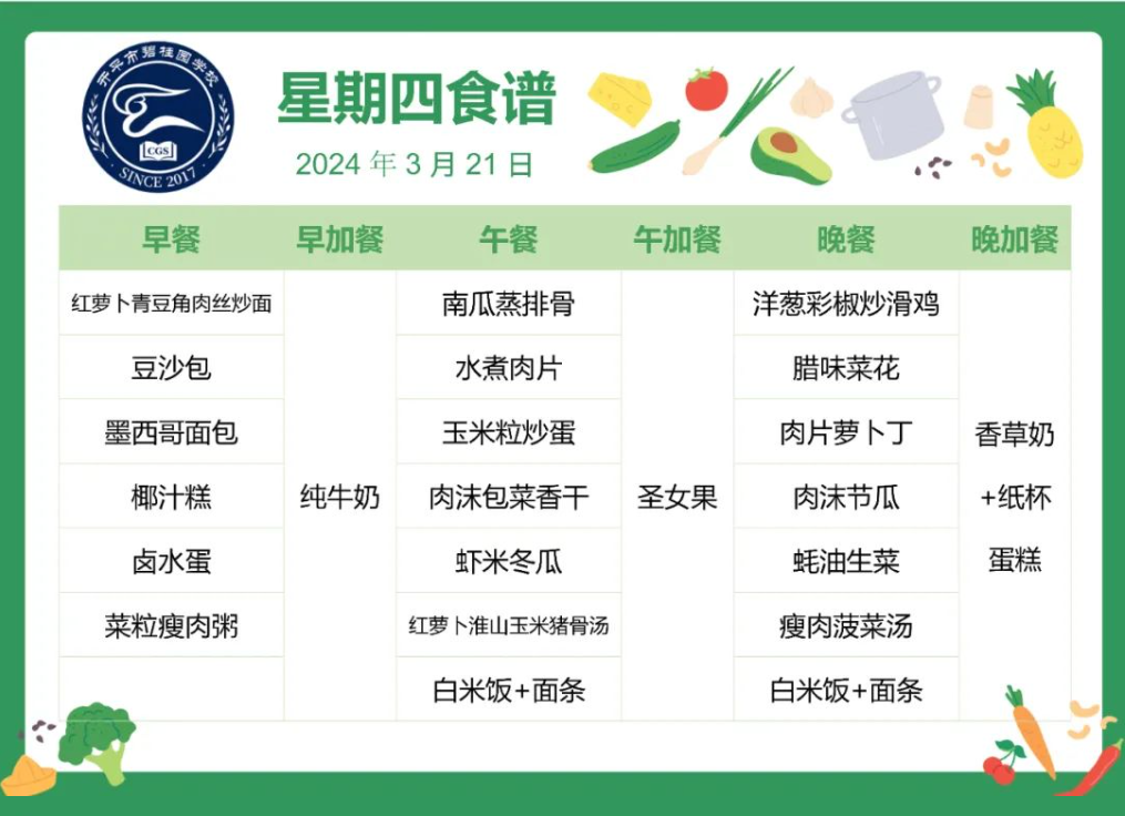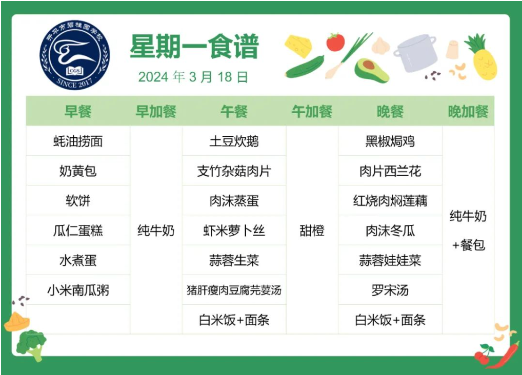 开平市碧桂园学校第五周自助餐食谱