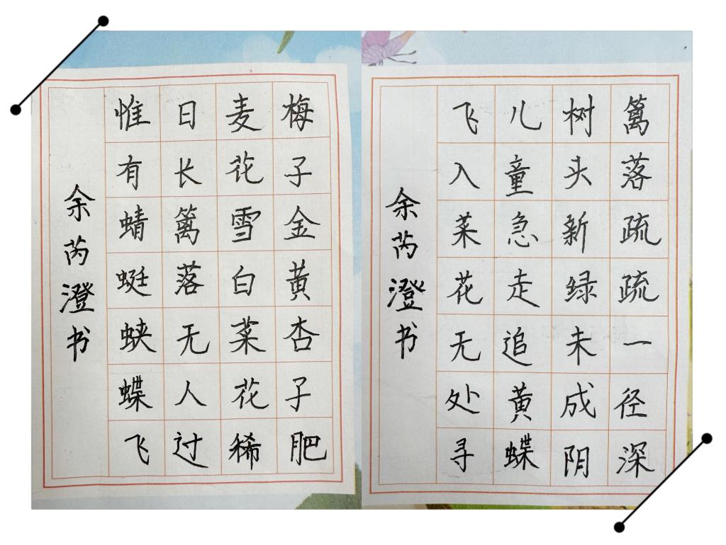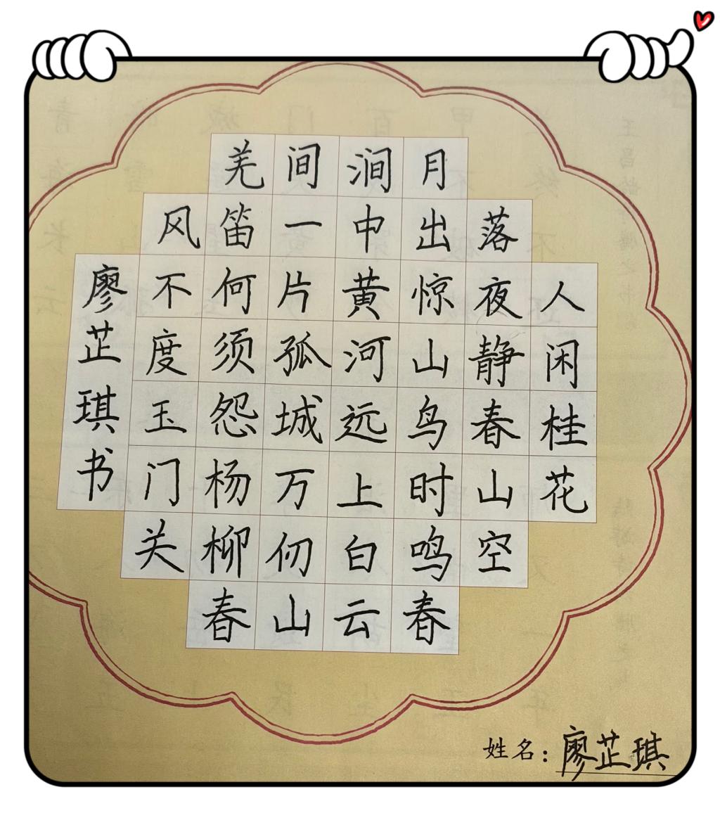 一笔一画皆是情,一字一词都有意。同学们所写作品笔画流畅,横平竖直,结构匀称,整体美观,洋溢着笔墨之香、文雅之风。让我们一起来欣赏一下吧!
