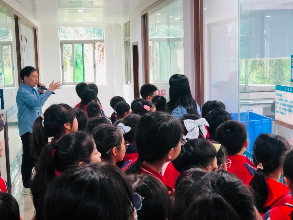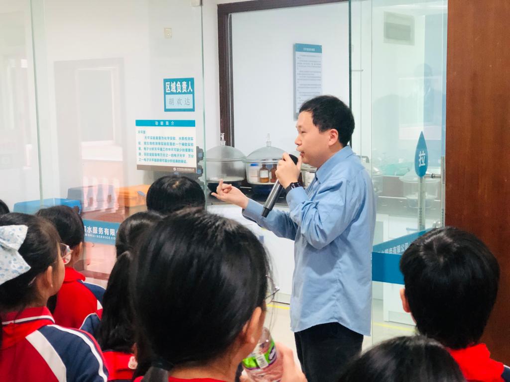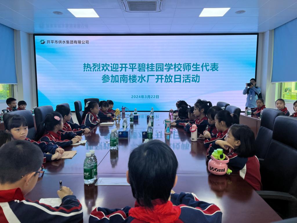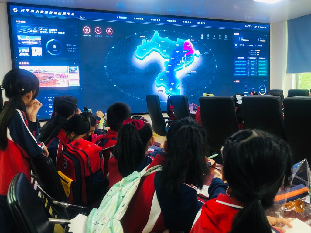 在劳厂长和工作人员的热情带领下,同学们来到调度中心观看水资源的宣传片,充满科技感的画面让同学们震撼不已。南楼水厂是开平市主力供水厂,供水区域包括开平市城区、赤坎、塘口、百合、蚬冈、沙塘等周边乡镇,为超过50万人提供优质的供水服务,真了不起!