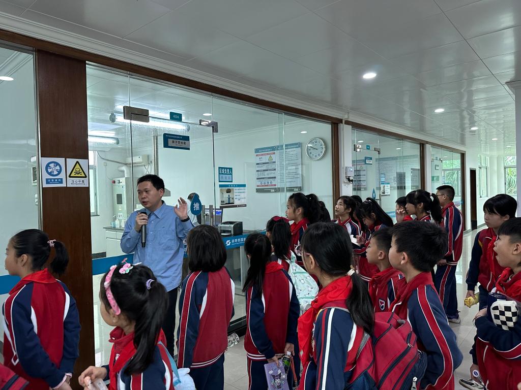 实验室也藏着不少秘密,让同学们大开眼界。在讲解员的带领下,同学们逐层参观了实验室的先进仪器和设备,纷纷把本子拿出来记录这些仪器的名称和作用,不断地向讲解员提出好奇的问题,甚至还画起了实验器材的简笔图画,抓住这难得的学习机会,真不愧是勤学好问的开碧学子。