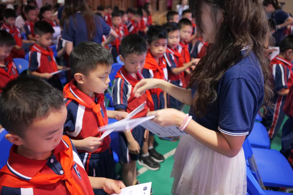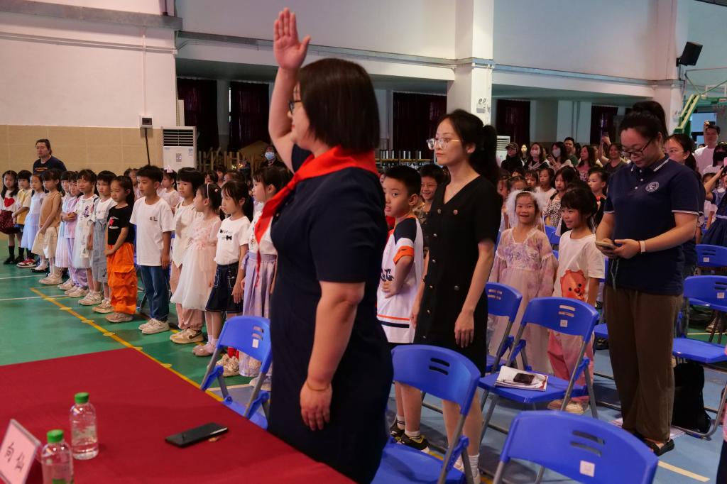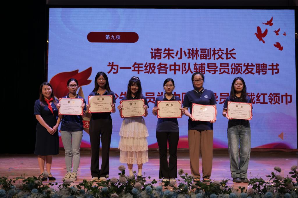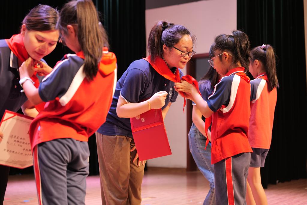 朱小琳副校长还为每位中队辅导员颁发了聘书,少先队员为辅导员佩戴了红领巾。