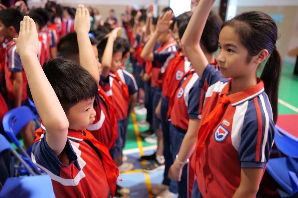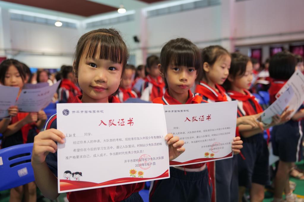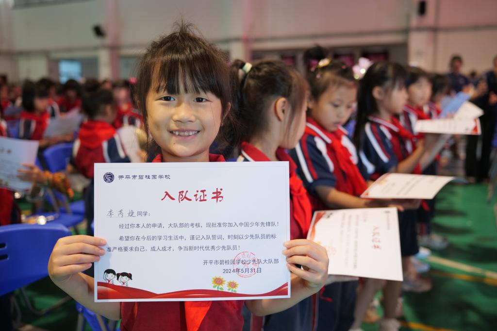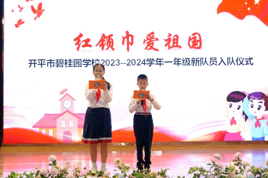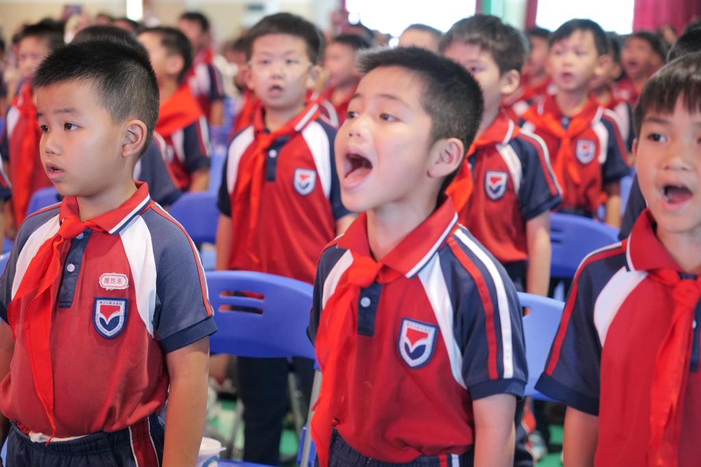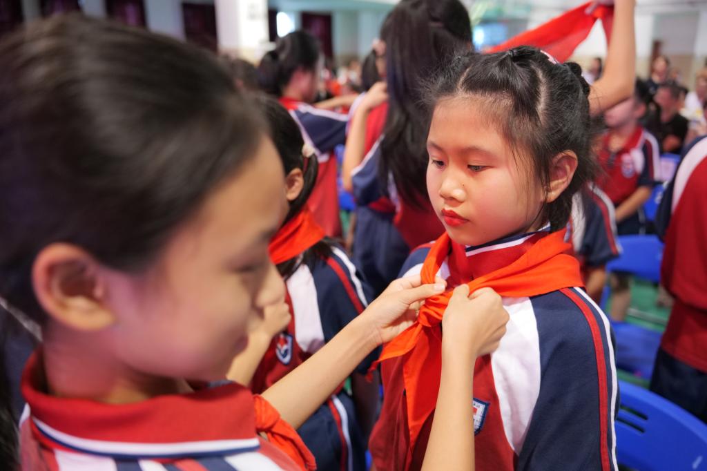 有一种红,叫“红领巾的红”;有一种骄傲,叫“我入队了”;有一种光荣,叫“戴上红领巾”。为继承和发扬少先队的光荣传统,培养少先队员的爱国爱党情怀,5月31日开平市碧桂园学校在综合馆举行了“红领巾爱祖国”的新少先队员入队仪式。