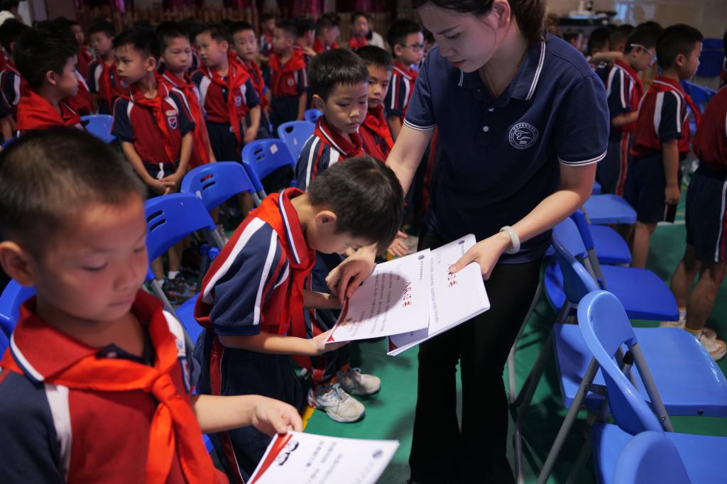 辅导员们也为新队员们发放了入队证书,新队员们进行了庄严的宣誓。