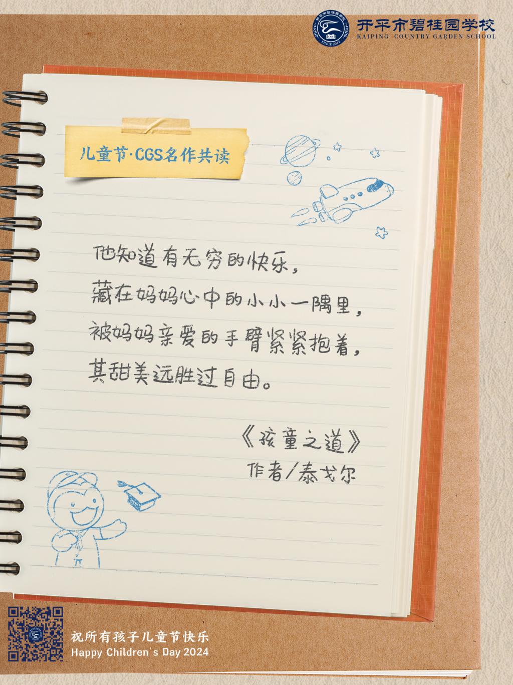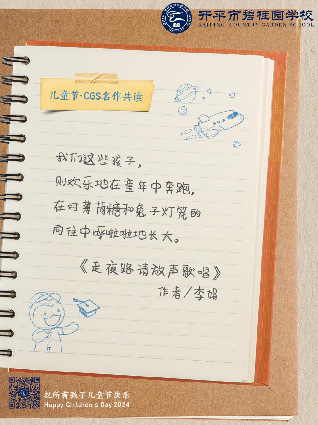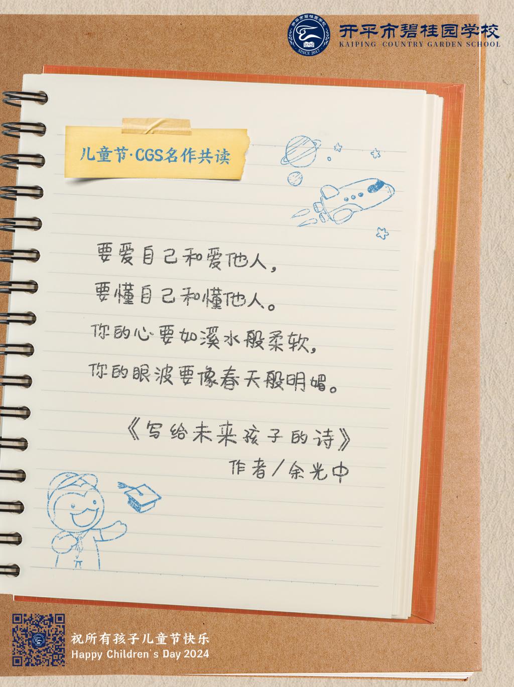 在儿童节到来之际,开平市碧桂园学校送上写给孩子们的诗与歌。纯真年代,我们一起共读名作,在最美的语言中,永远对世界保持好奇。