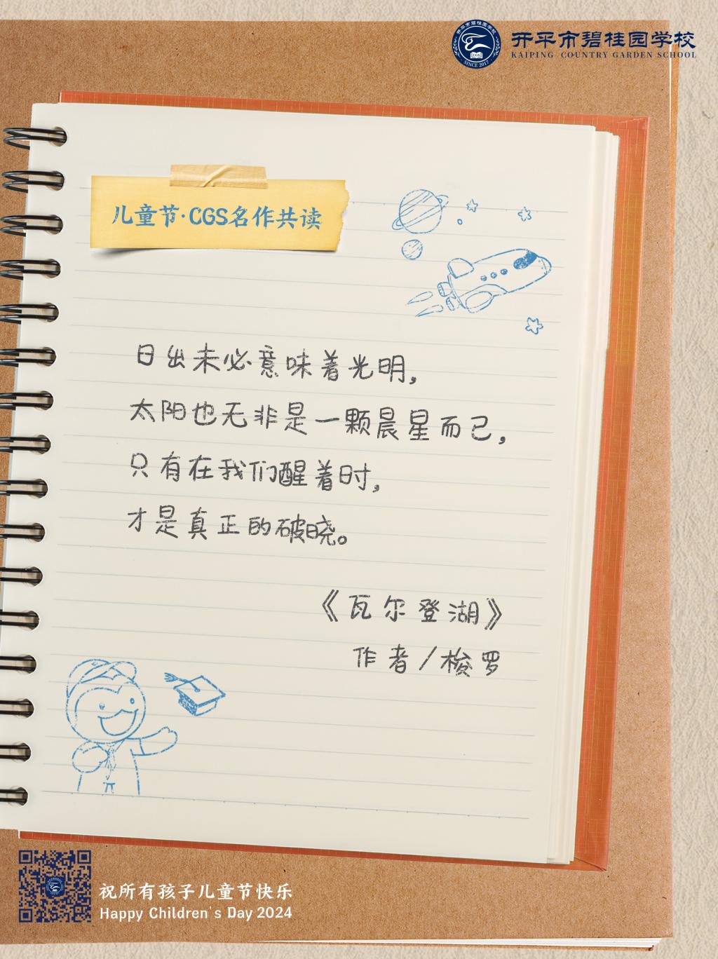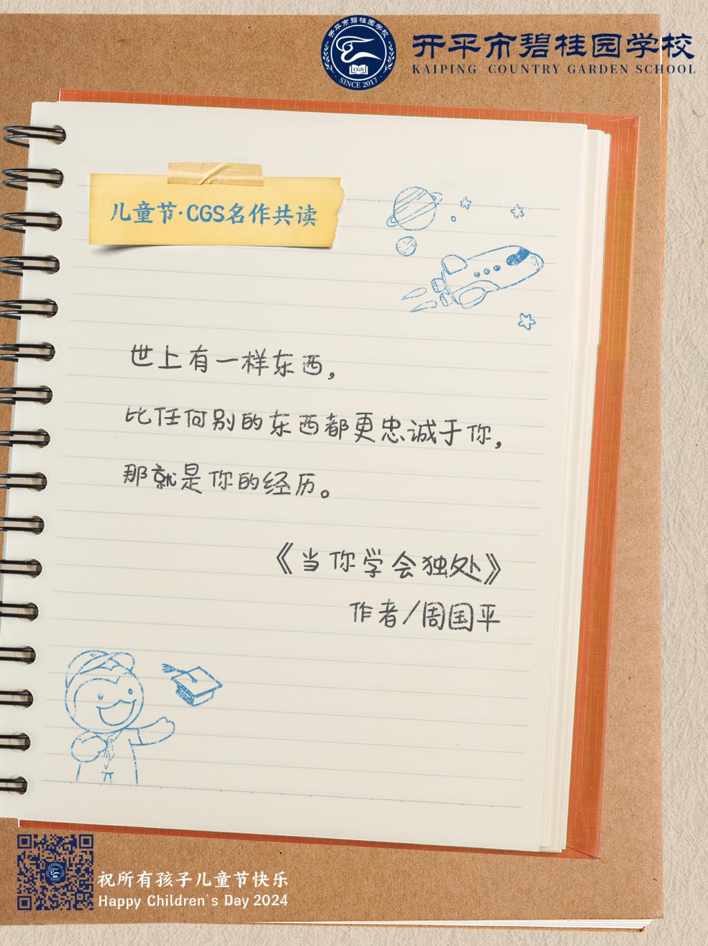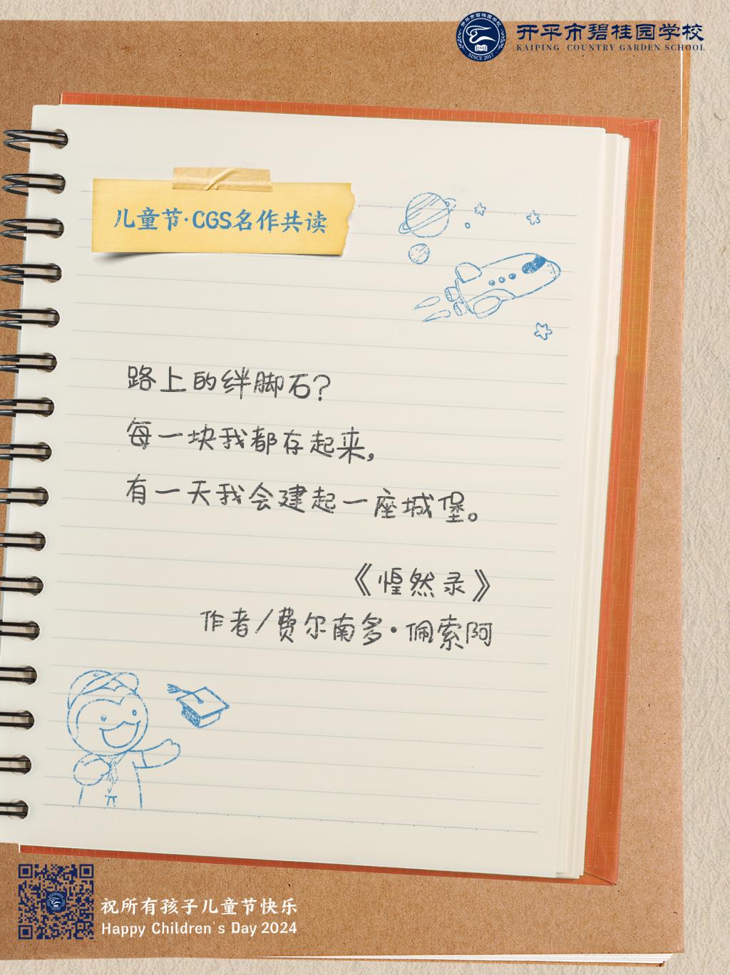 在儿童节到来之际,开平市碧桂园学校送上写给孩子们的诗与歌。纯真年代,我们一起共读名作,在最美的语言中,永远对世界保持好奇。